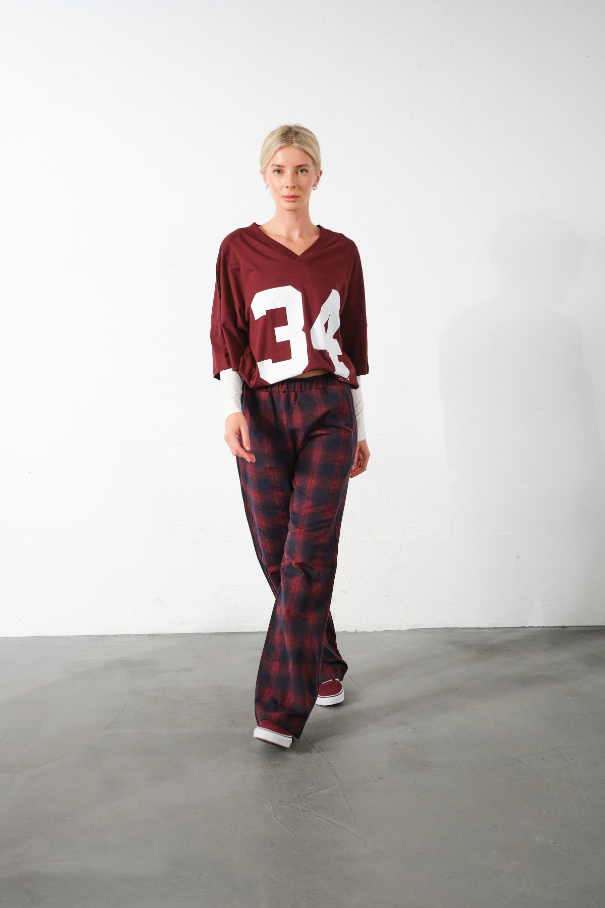 Bordo Ekoseli Flanel Yüksek Bel Pijama Altı Rahat Kesim Geniş Paça Pamuklu Kadın Pantolon Bordo Ekoseli Flanel Yüksek Bel Pijama Altı Rahat Kesim Geniş Paça Pamuklu Kadın Pantolon WN24WODMPA02160 XL
