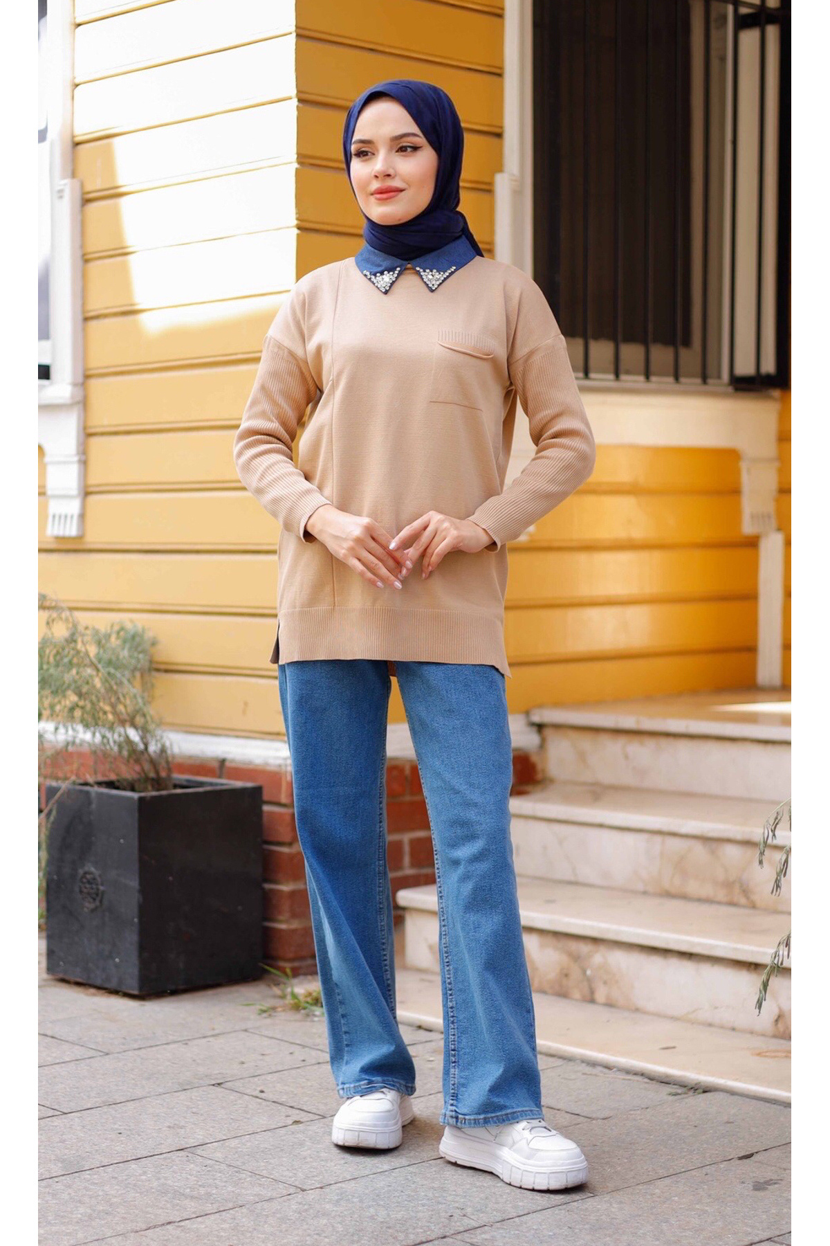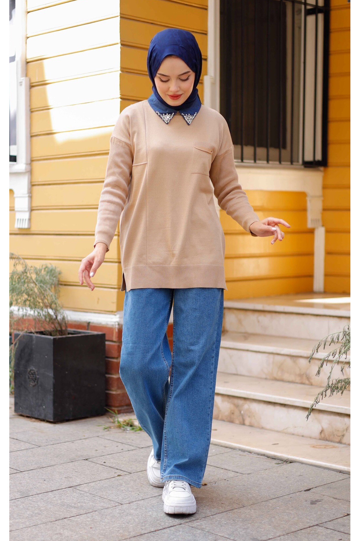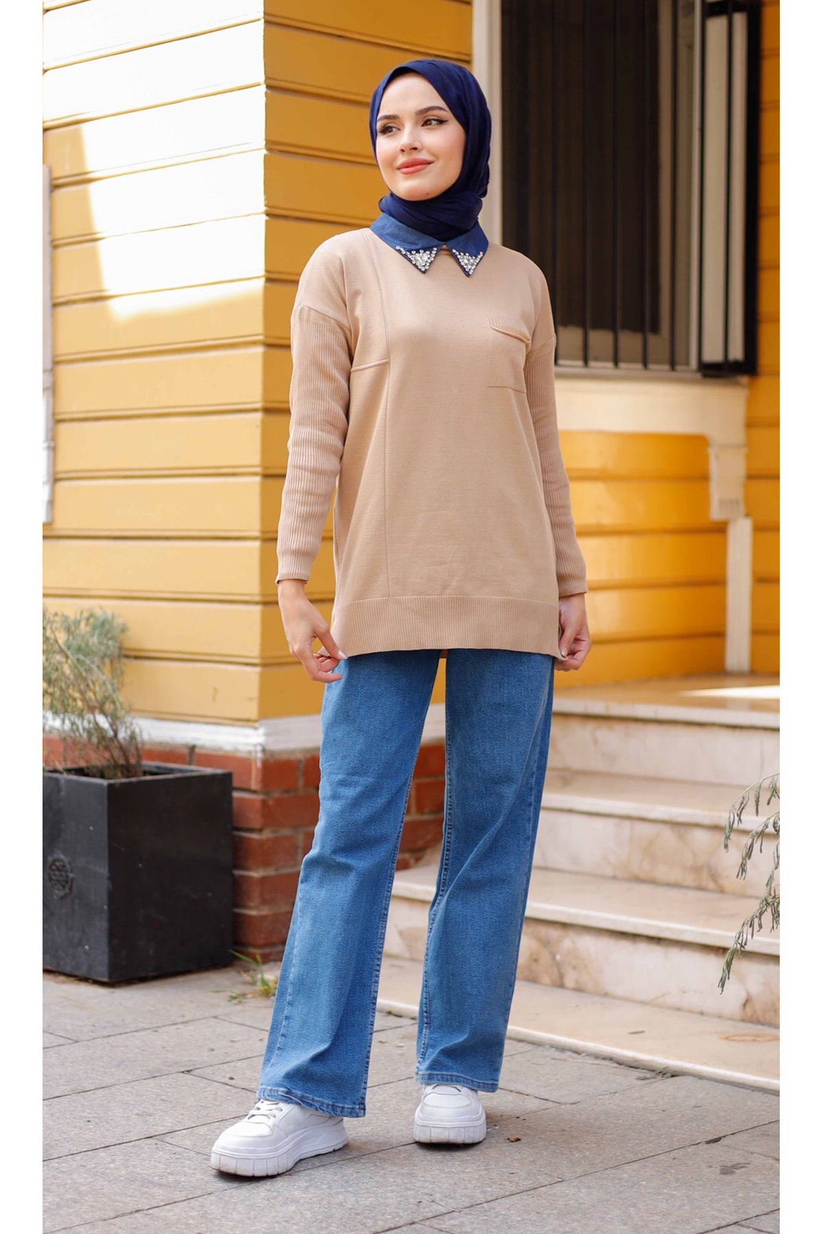 Kadın Merserize Yakası Taş Detaylı Triko Tunik Kadın Merserize Yakası Taş Detaylı Triko Tunik pmk344 Standart