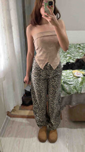 Baggy Fit Leopar Desenli Kahverengi Kadın Pantolon D8149AX/BN142 Baggy Fit Leopar Desenli Kahverengi Kadın Pantolon D8149AX/BN142 D8149AX24AU 42