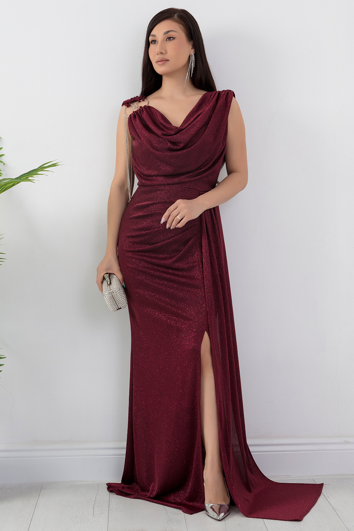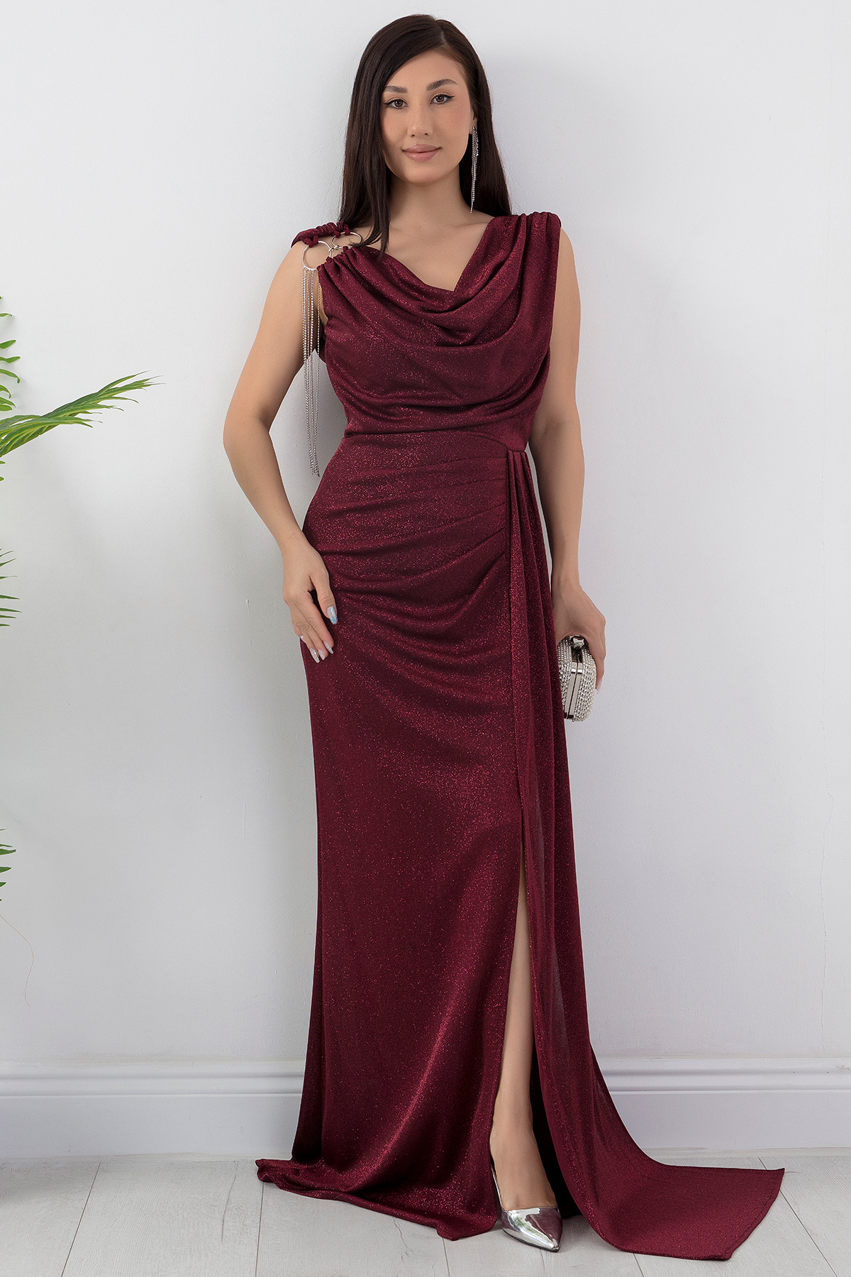Omuz Aksesuarlı Simli Degaje Yaka Elbise 39878 Omuz Aksesuarlı Simli Degaje Yaka Elbise 39878 TYC373B0D212710900 2XL