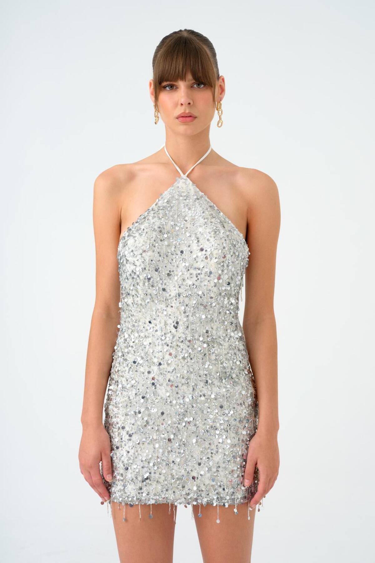 Boyundan Askılı Taşlı Mini Abiye Elbise - 9186C Boyundan Askılı Taşlı Mini Abiye Elbise - 9186C 101ABY24S.00089 44