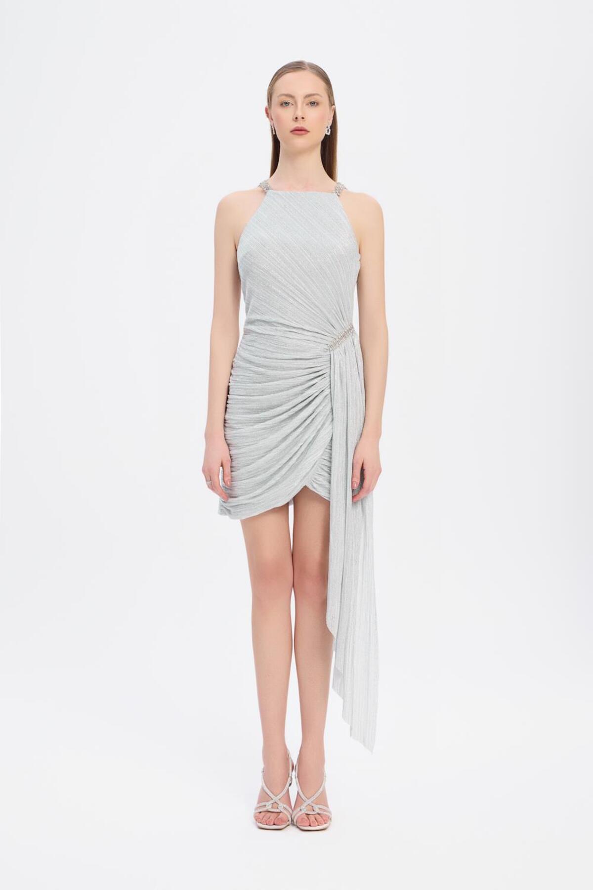 Taşlı Drape Detaylı Mini Abiye Elbise - 9009C Taşlı Drape Detaylı Mini Abiye Elbise - 9009C 101ABY24S.00010 44