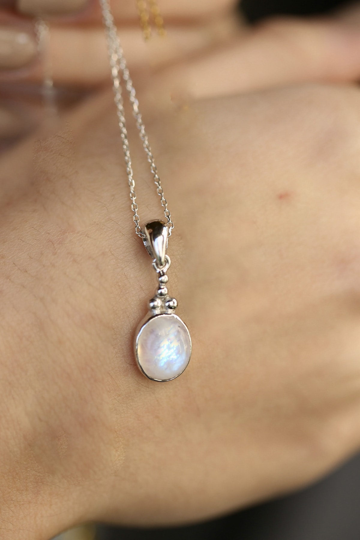 Berceste Model Ay Taşı Gümüş Kolye - Küçük Boy Berceste Model Ay Taşı Gümüş Kolye - Küçük Boy TSS1974 تک سایز