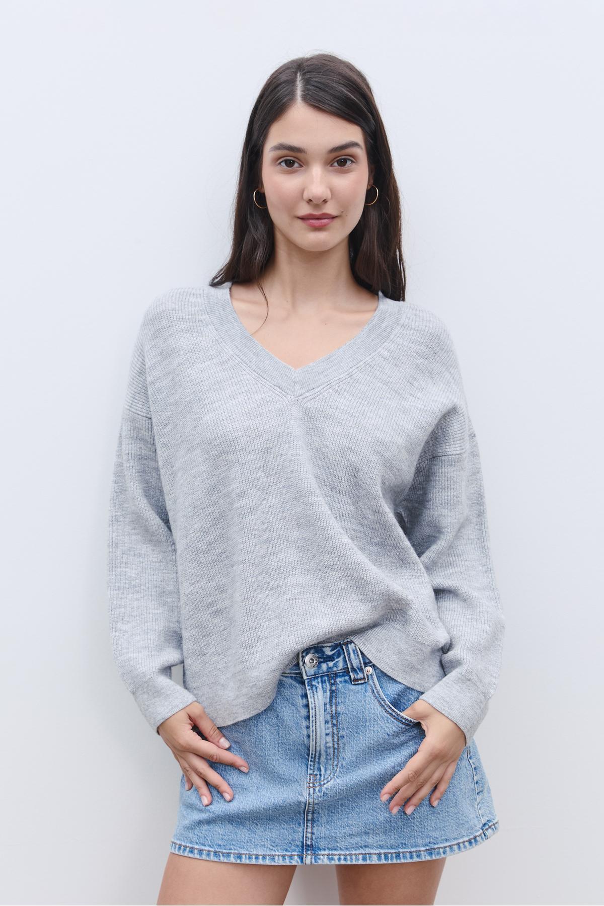 Keçeli V yaka kazak Keçeli V yaka kazak 05014433 XL