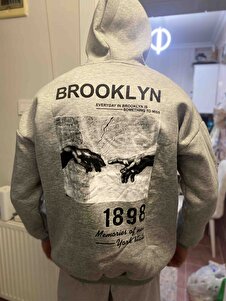 Kadın Gri 1898 Baskılı Kapüşonlu Oversize 3 iplik Şardonlu Salaş Bol Kesim Hoodie Sweatshirt Kadın Gri 1898 Baskılı Kapüşonlu Oversize 3 iplik Şardonlu Salaş Bol Kesim Hoodie Sweatshirt S5003 XL/2XL