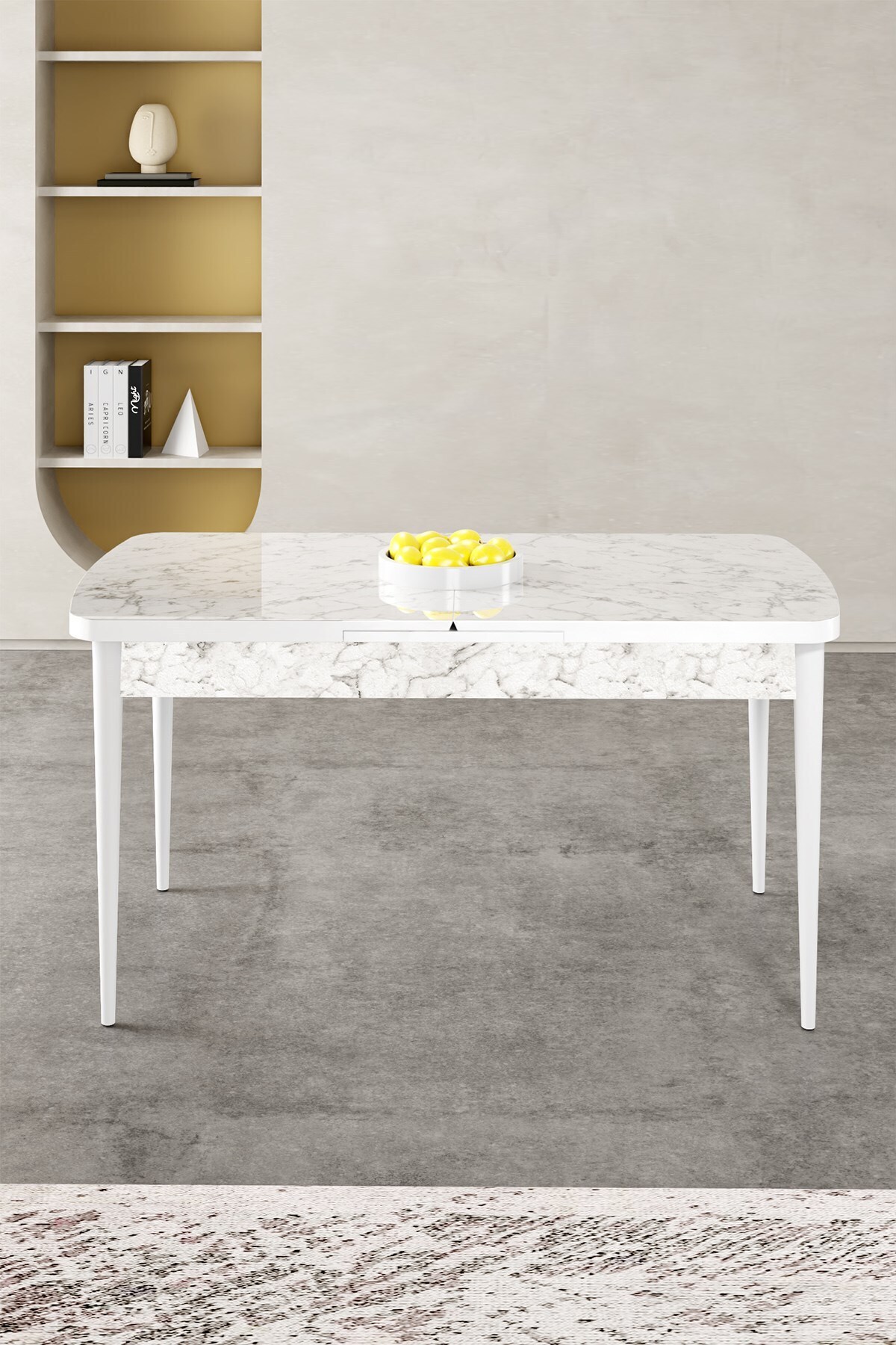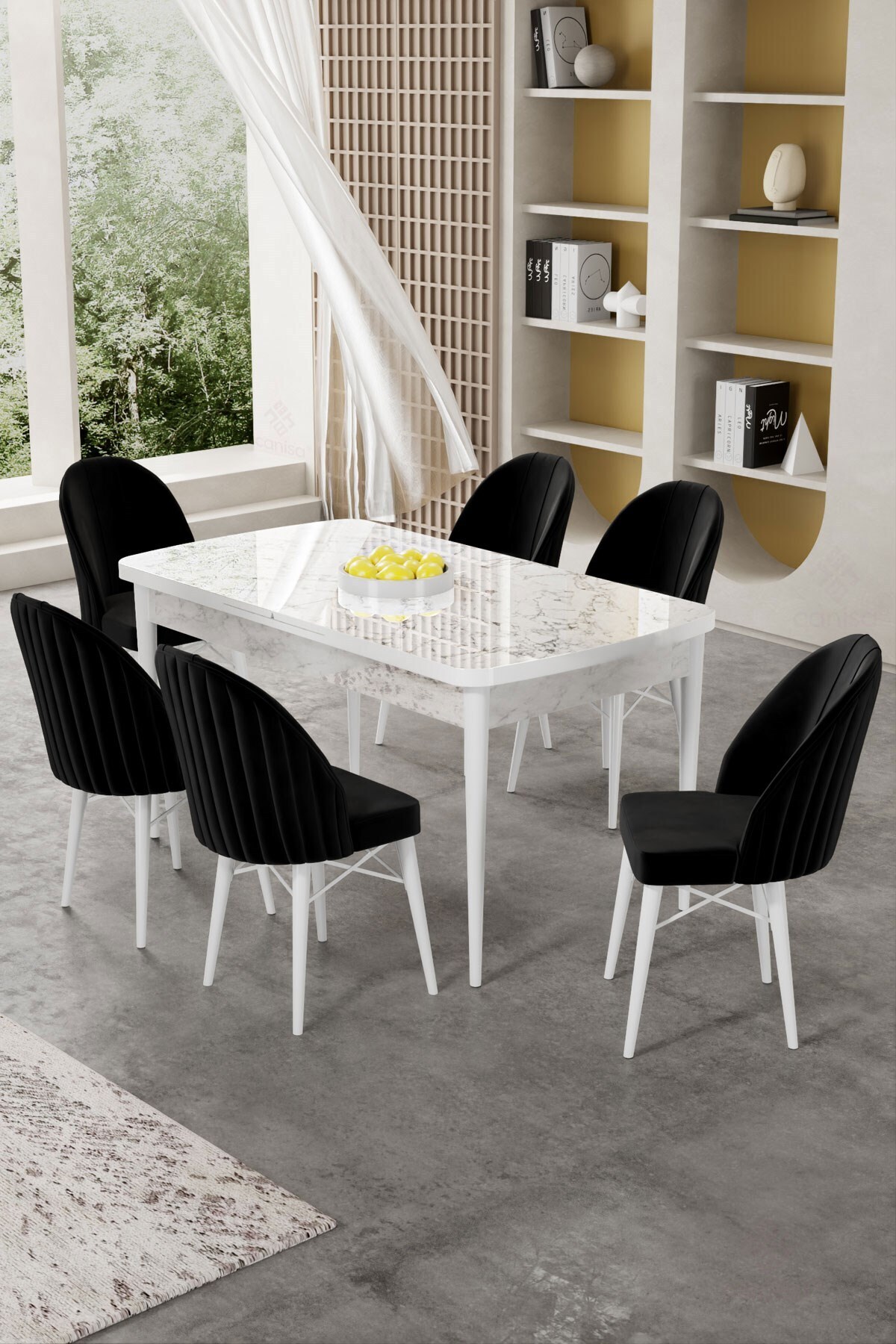 Gale Serisi 80x132 Açılabilir Lak Panel Beyaz Mermer Desen Mutfak Masa Takımı 6 Sandalye Gale Serisi 80x132 Açılabilir Lak Panel Beyaz Mermer Desen Mutfak Masa Takımı 6 Sandalye 22GALE06BYZMR تک سایز