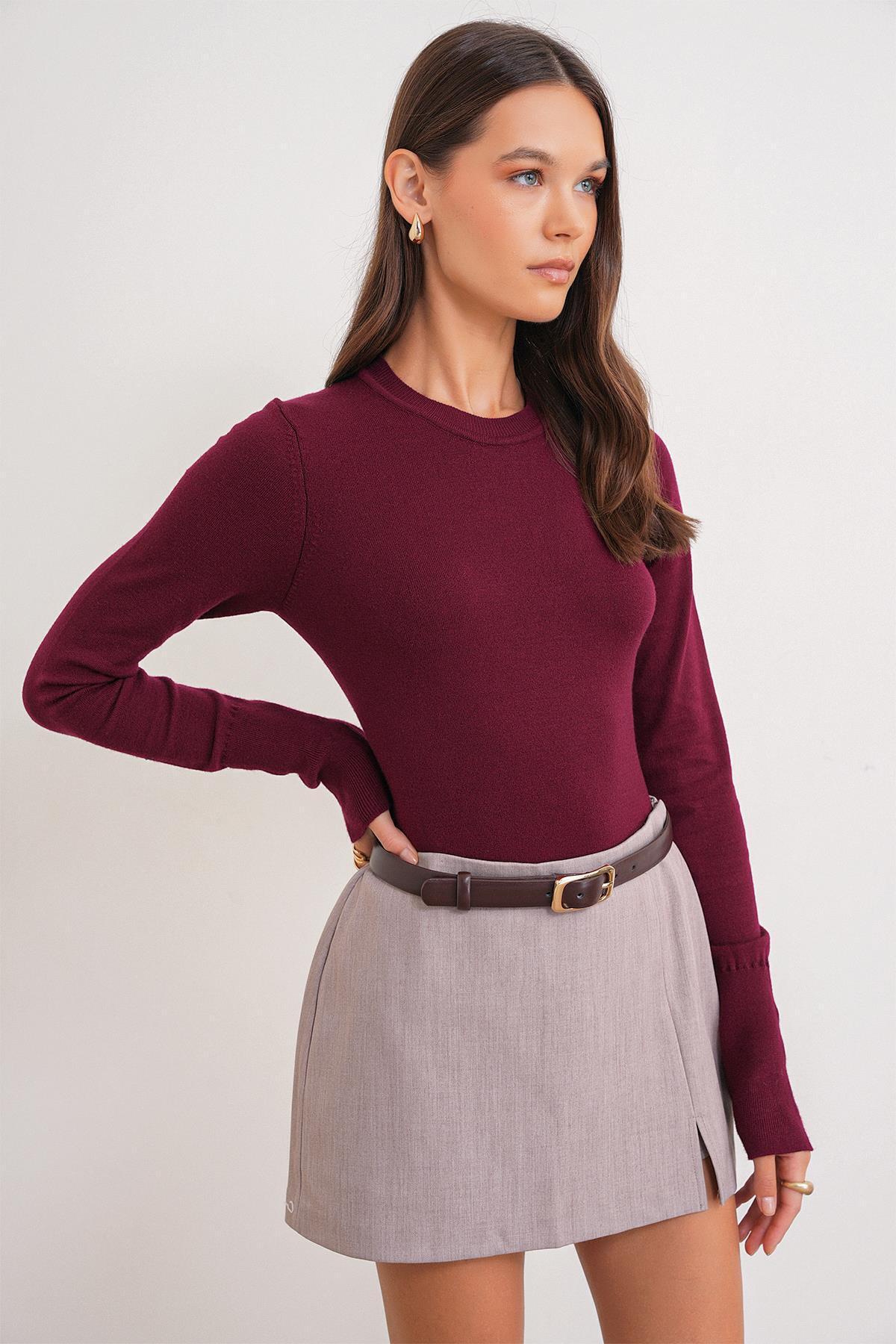 6736 Kadın Bisiklet Yaka Kolu Droplu Triko Kazak Bordo 6736 Kadın Bisiklet Yaka Kolu Droplu Triko Kazak Bordo K24KZK6736 Standart