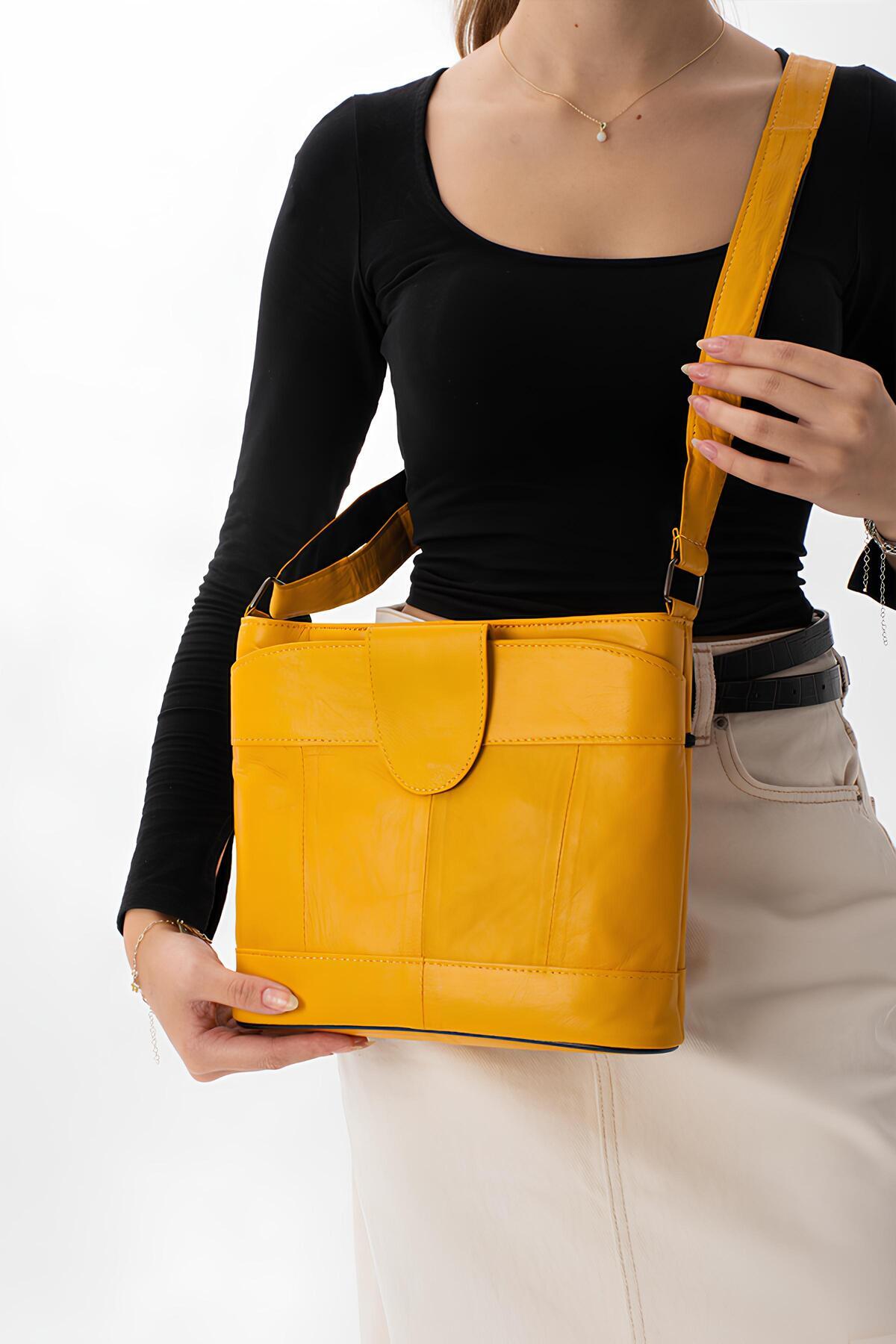 Hakiki Deri Çok Gözlü Çapraz Askılı Sarı Kadın Omuz Çantası Hakiki Deri Çok Gözlü Çapraz Askılı Sarı Kadın Omuz Çantası HDDM350 Standart