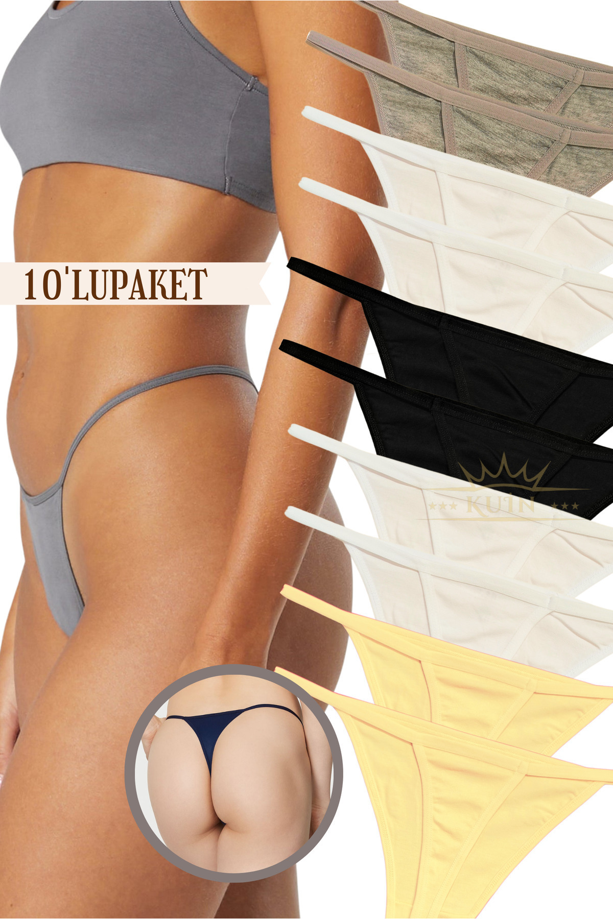 10'lu Paket Ip Askılı Pamuklu, Likralı Penye String Tanga Siyah Külot 10'lu Paket Ip Askılı Pamuklu, Likralı Penye String Tanga Siyah Külot 4754-10P XL