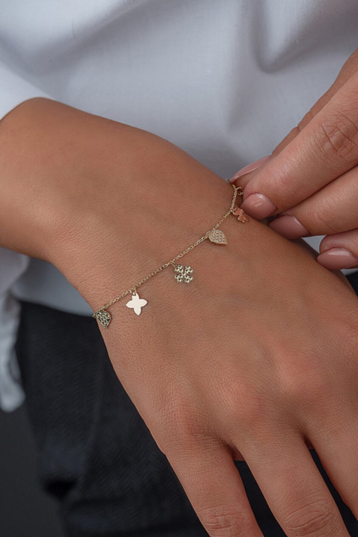 Yonca Nal Ve Kalp Figürlü Yeşil Altın Bileklik Yonca Nal Ve Kalp Figürlü Yeşil Altın Bileklik JOU04184 20 cm