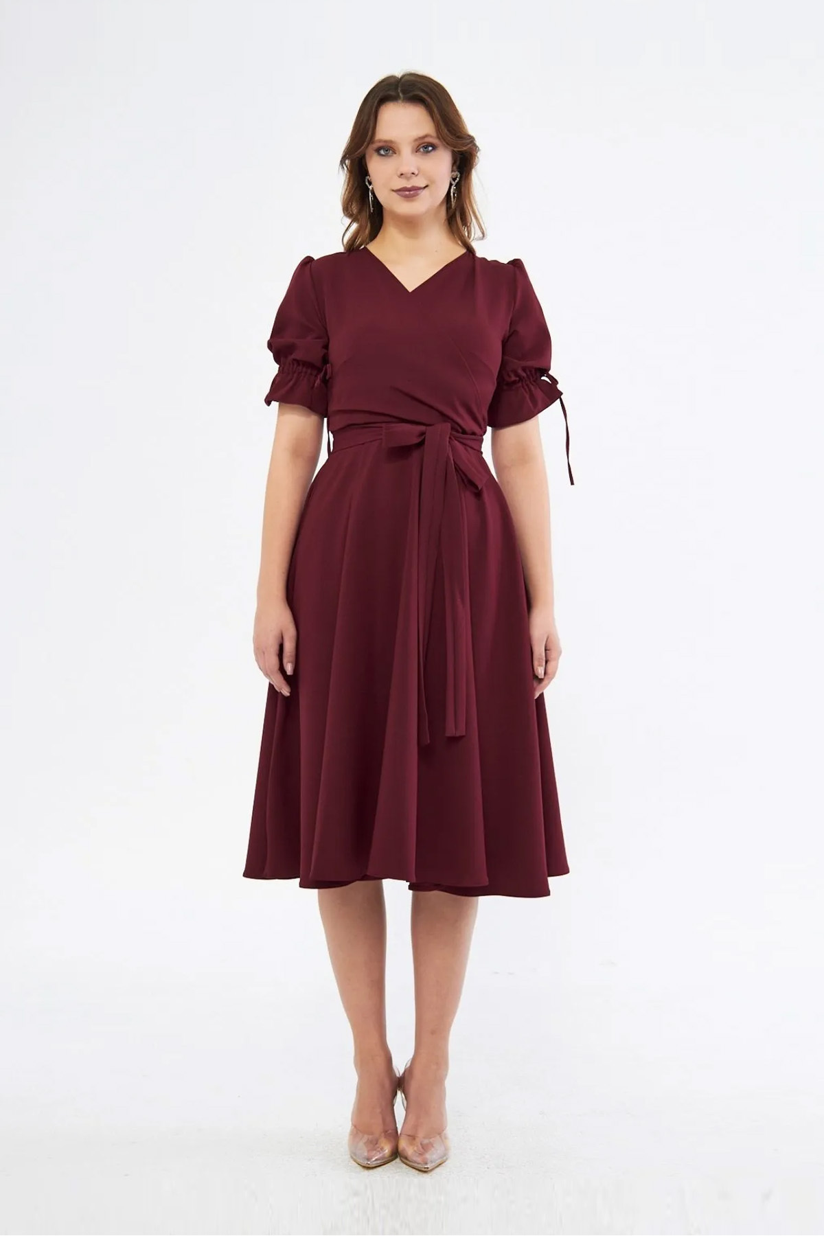 Kadın Bordo Kısa Kollu Kruvaze Yaka Kuşaklı Midi Boy Abiye Mezuniyet Elbisesi Kadın Bordo Kısa Kollu Kruvaze Yaka Kuşaklı Midi Boy Abiye Mezuniyet Elbisesi BM-0510-MID-KK 54