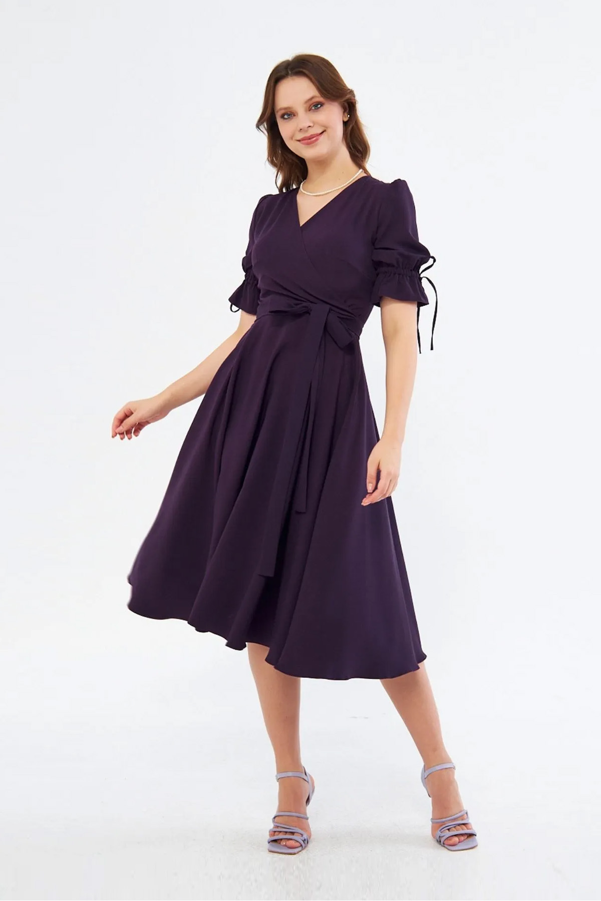 Kadın Mürdüm Kısa Kollu Kruvaze Yaka Kuşaklı Midi Boy Abiye Mezuniyet Elbisesi Kadın Mürdüm Kısa Kollu Kruvaze Yaka Kuşaklı Midi Boy Abiye Mezuniyet Elbisesi BM-0510-MID-KK 54