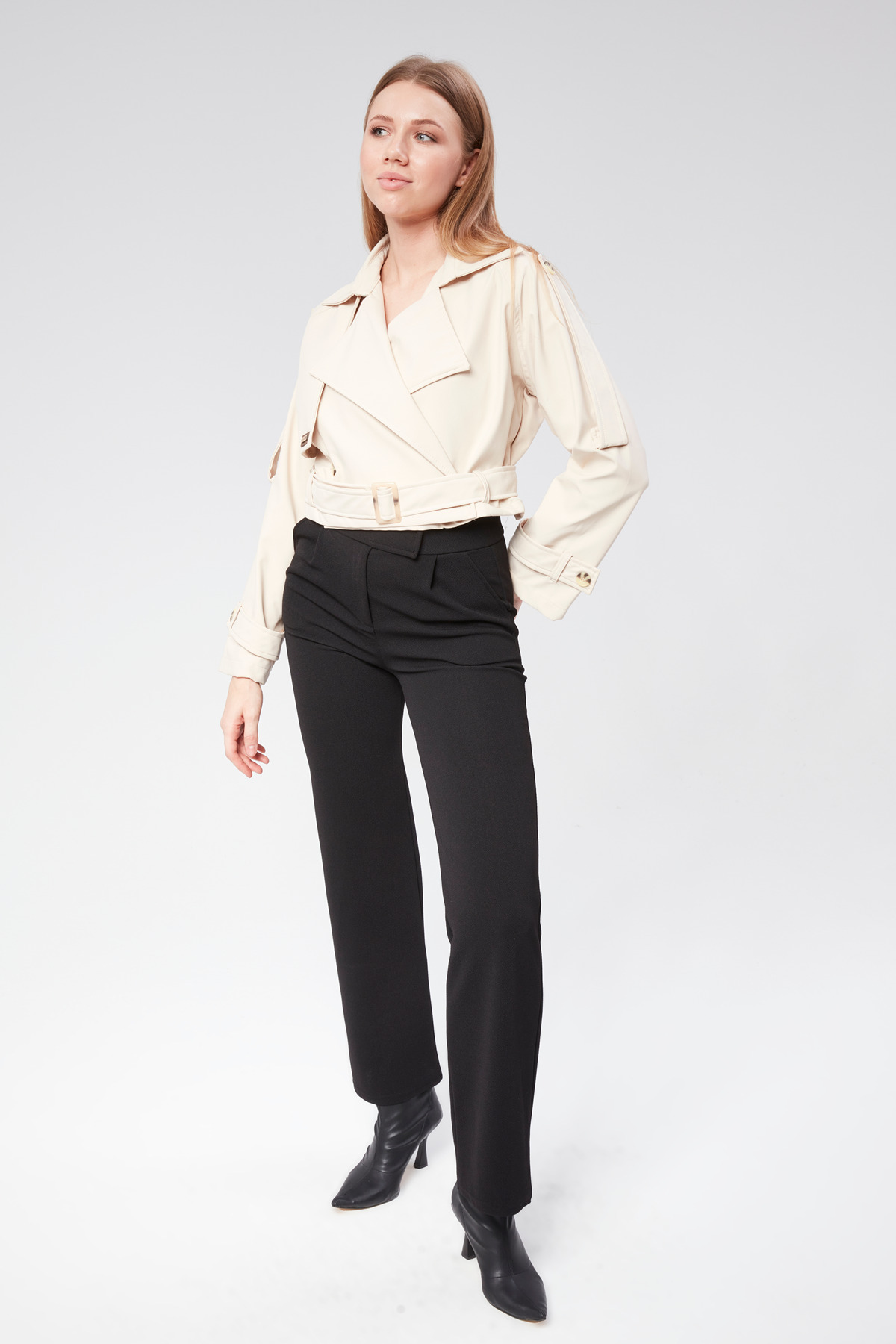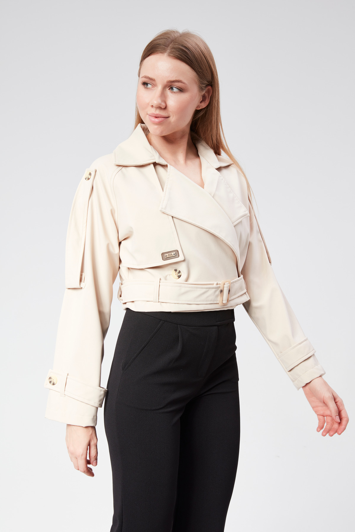 Kadın Soft Kumaş Kruveza Kemerli Crop Ceket Kadın Soft Kumaş Kruveza Kemerli Crop Ceket VıoShıne0102 L
