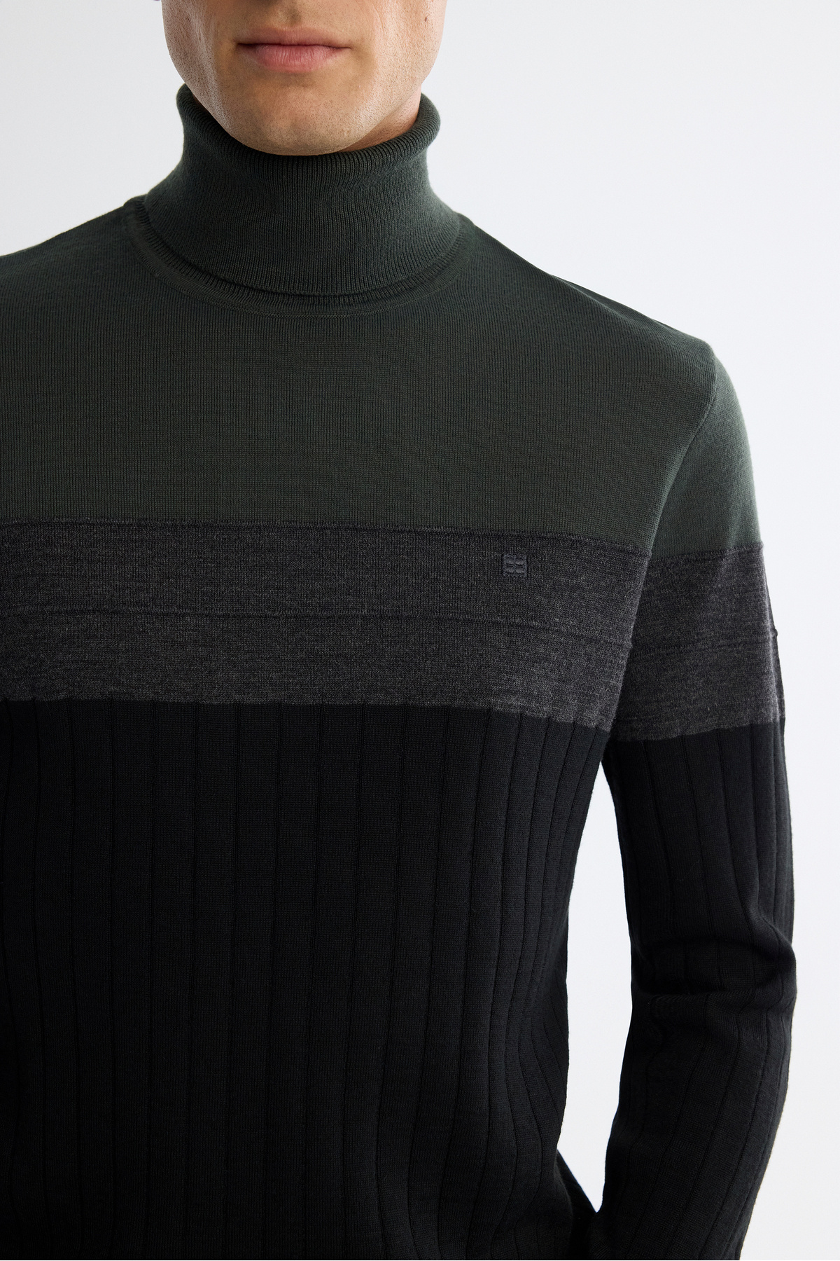 Erkek Haki Tam Balıkçı Yaka Blok Renkli Yün Karışımlı Regular Fit Kazak A42Y5013 Erkek Haki Tam Balıkçı Yaka Blok Renkli Yün Karışımlı Regular Fit Kazak A42Y5013 2XL