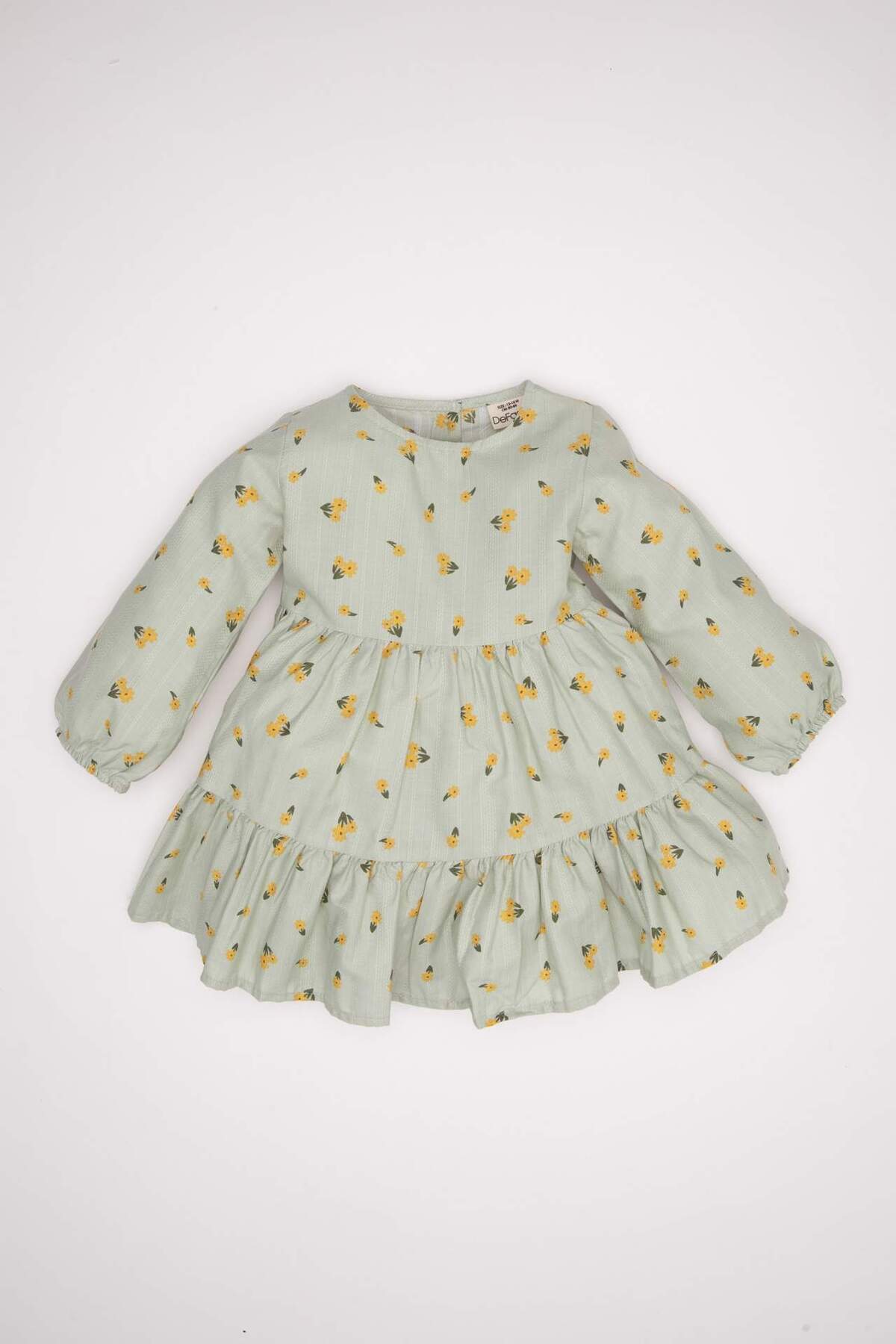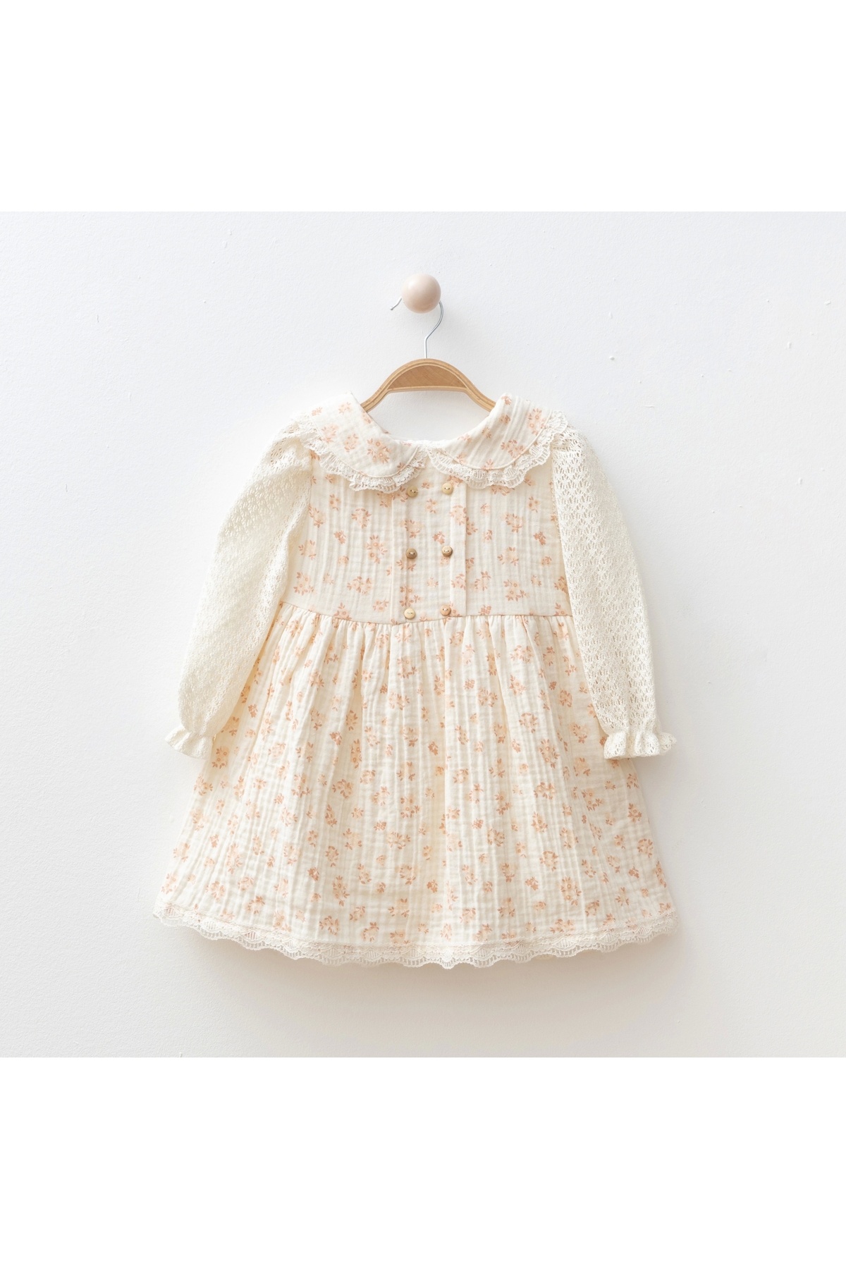 Kız Bebek Çiçekli Uzun Kollu Pazen Elbise D5636A524WN Kız Bebek Çiçekli Uzun Kollu Pazen Elbise D5636A524WN 5-6 Yaş