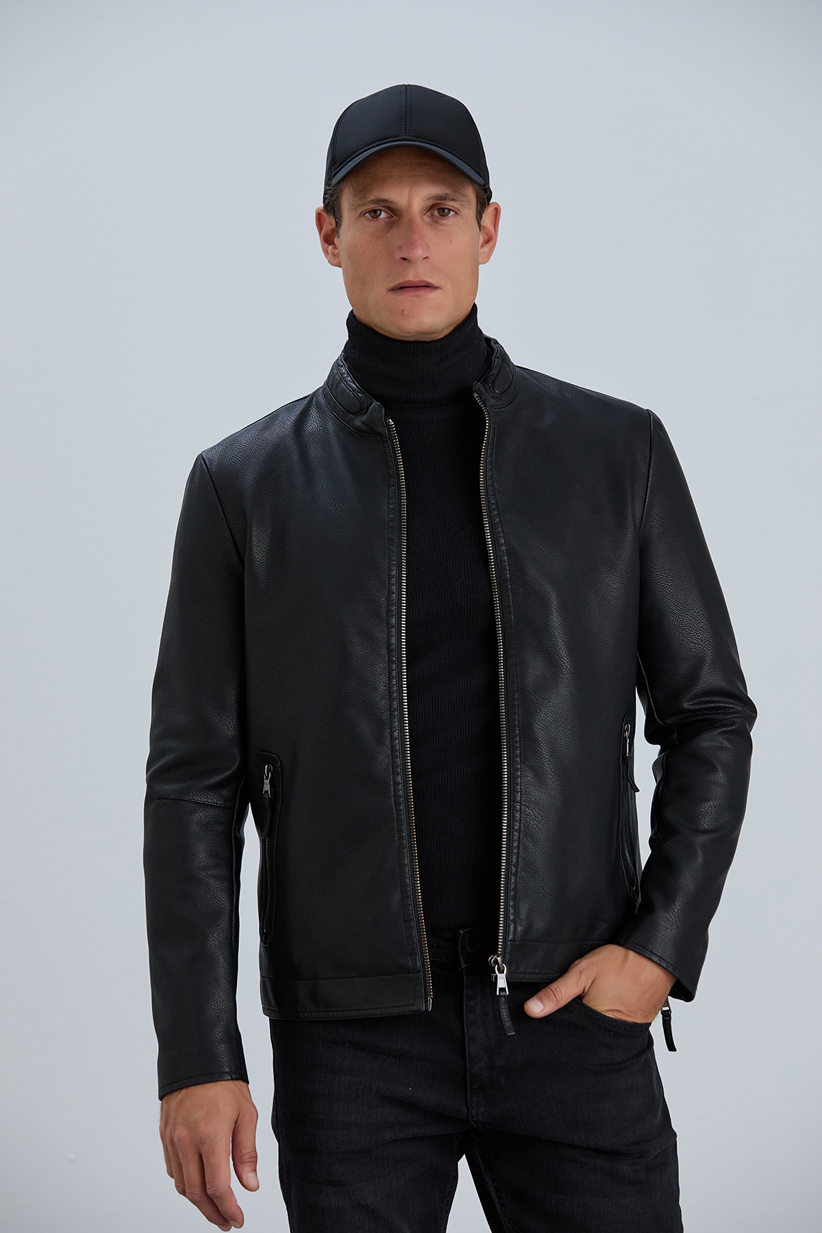 Siyah Suni Deri Ceket Slim Fit / Dar Kesim 0110440-900 Siyah Suni Deri Ceket Slim Fit / Dar Kesim 0110440-900 4W2MCK440900__SRS 3XL
