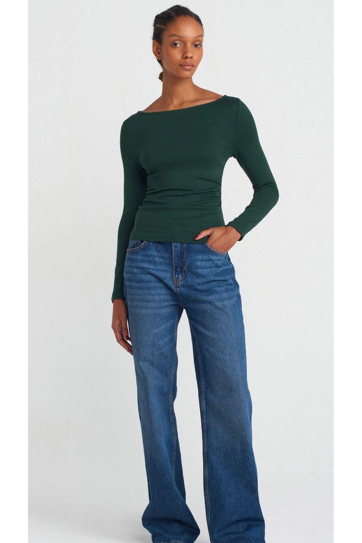 31401 Büzgülü Kayık Yaka Top-Siyah 31401 Büzgülü Kayık Yaka Top-Siyah 101A31401 40