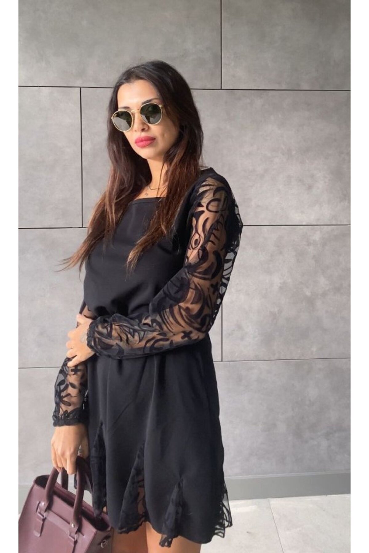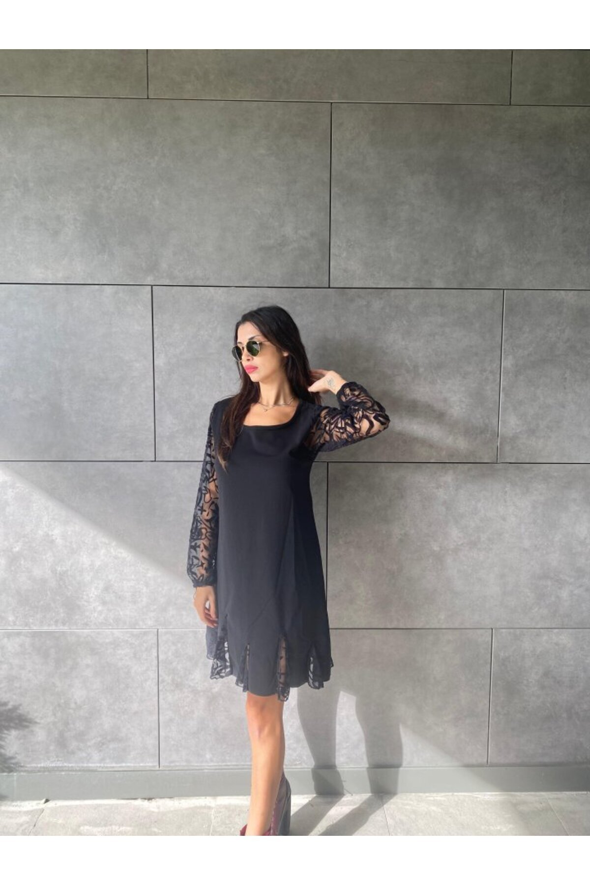Kadın Uzun Kollu Yuvarlak Yaka Kol Ve Etek Ucu Dantelli Kısa Ithal Krep Elbise Kadın Uzun Kollu Yuvarlak Yaka Kol Ve Etek Ucu Dantelli Kısa Ithal Krep Elbise SNN-671367a89ec2a Standart