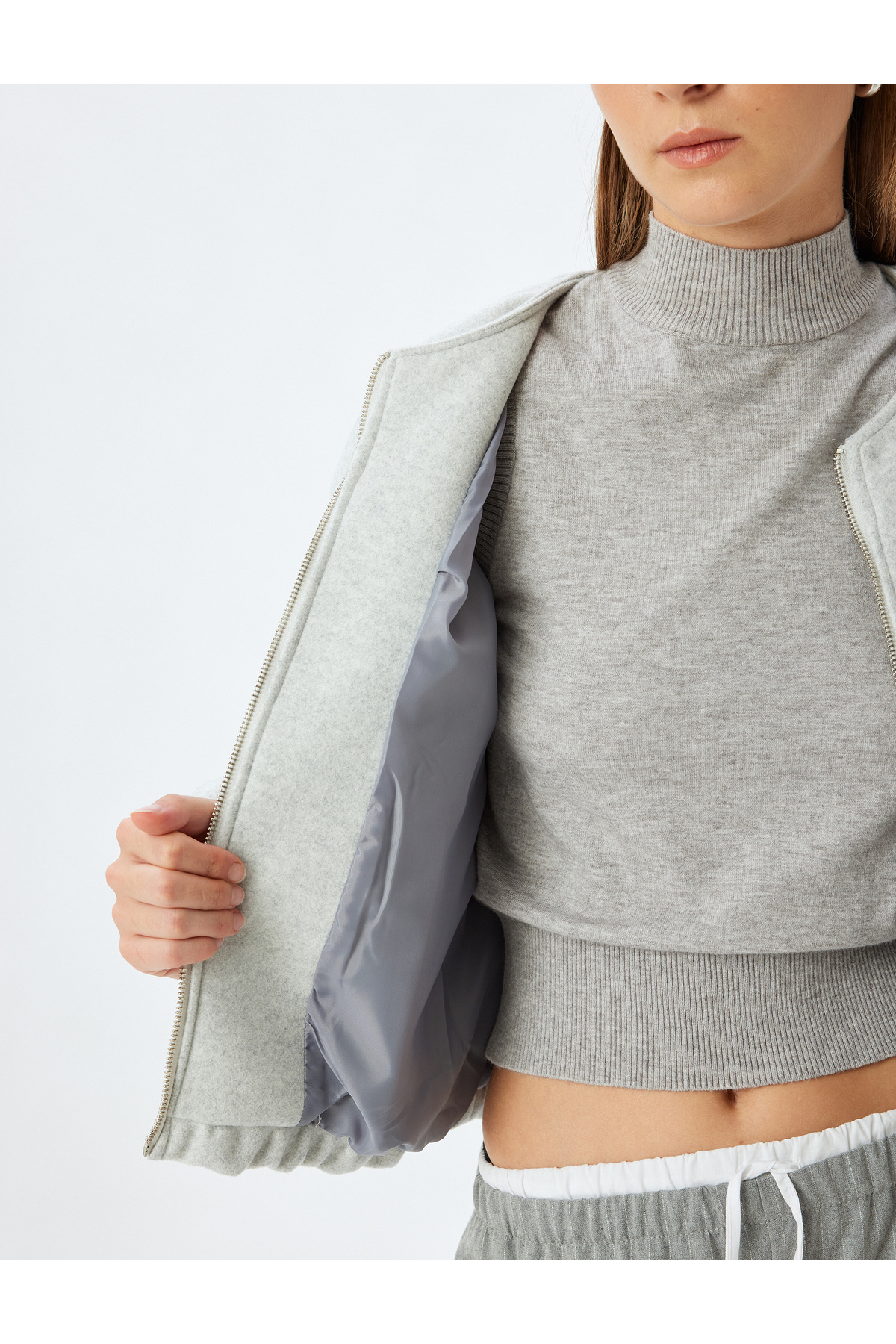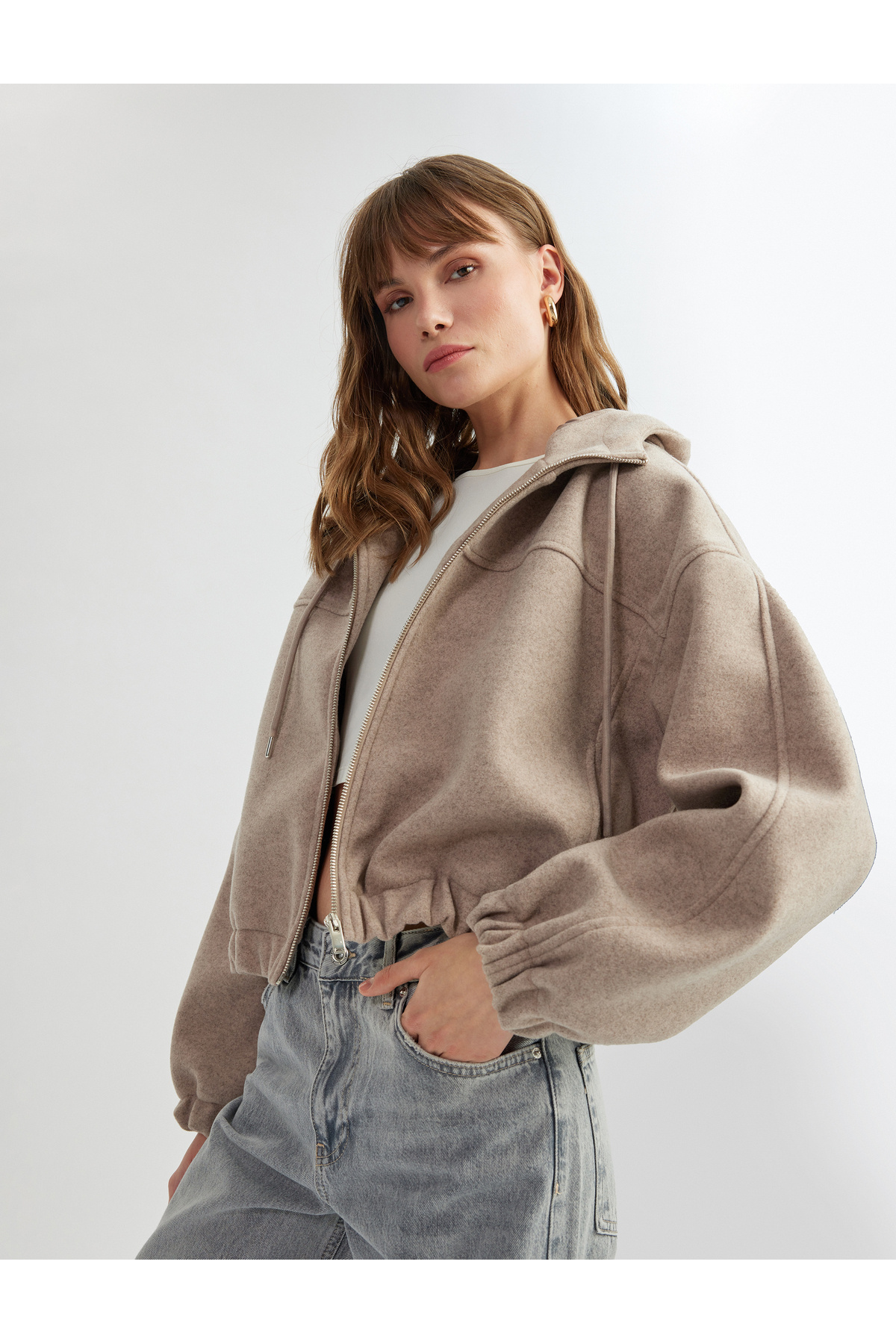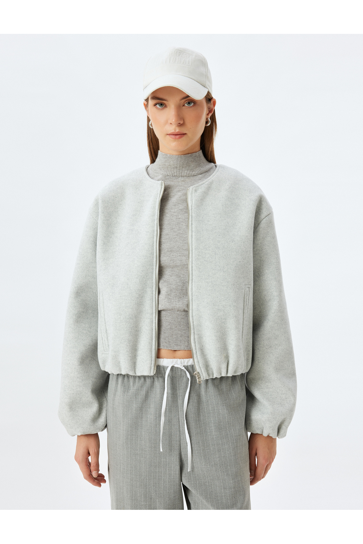 Crop Bomber Ceket Yumuşak Dokulu Yuvarlak Yaka Cepli Astarlı Crop Bomber Ceket Yumuşak Dokulu Yuvarlak Yaka Cepli Astarlı 5WAK20350EW 42