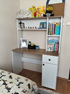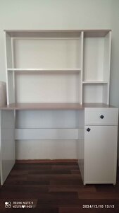 Çalışma Masası Parlak Beyaz Marbella Kitaplıklı Raflı Modern Masa Çalışma Masası Parlak Beyaz Marbella Kitaplıklı Raflı Modern Masa CLMA-01 تک سایز