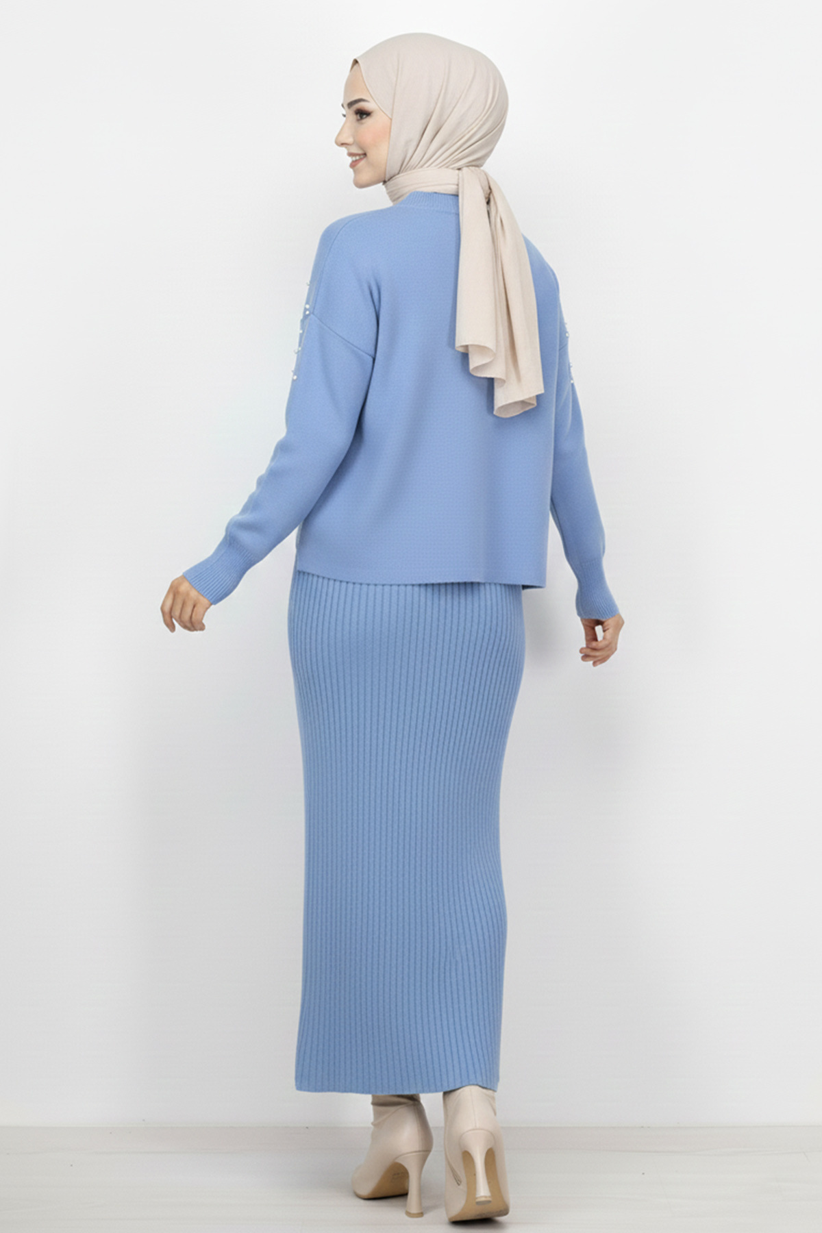 6109 İnci Detaylı Jile Triko Takım Mavi 6109 İnci Detaylı Jile Triko Takım Mavi 153578-00724KBTRK15 تک سایز