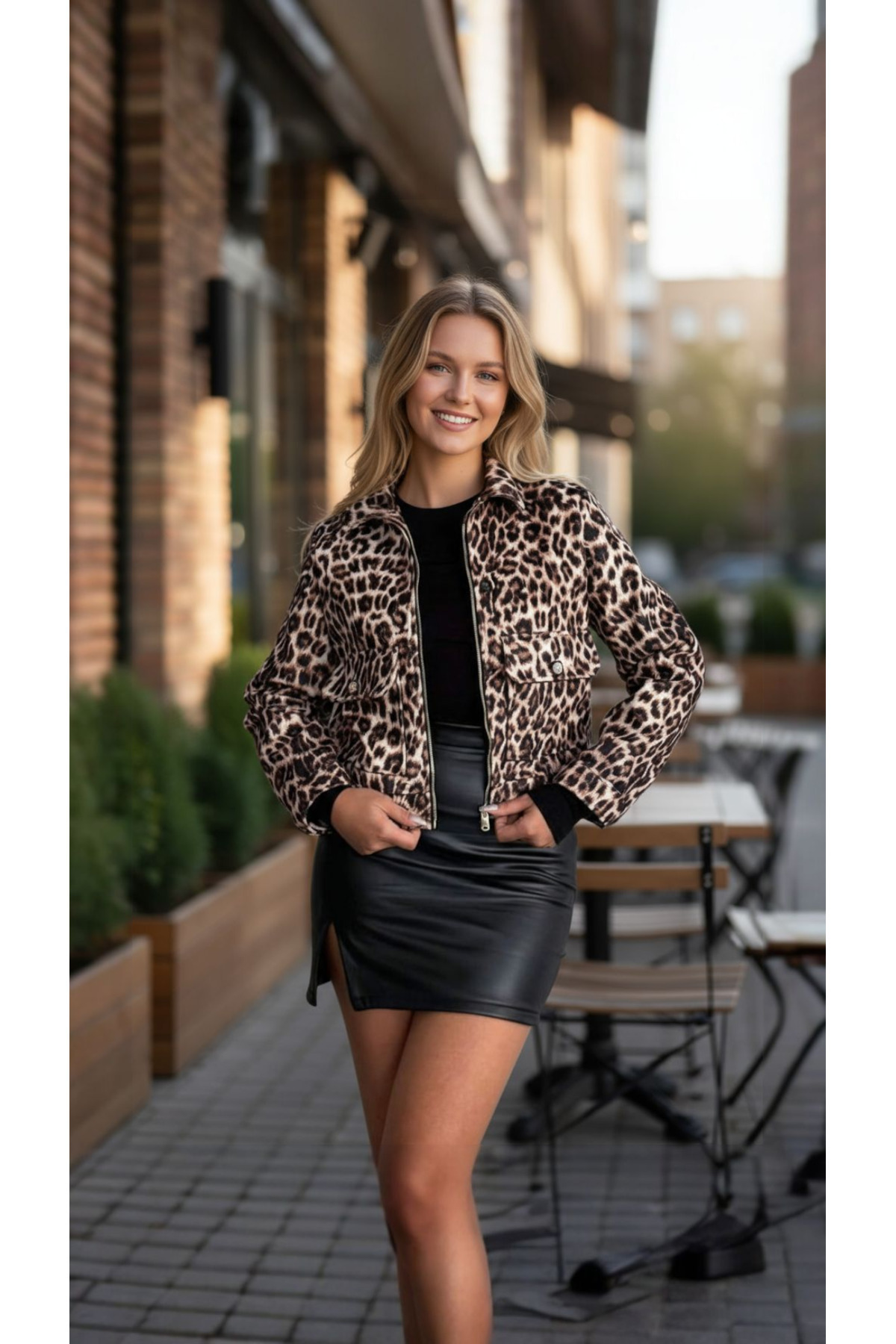 Leopar Desen Ön Cepli Ceket leopar Leopar Desen Ön Cepli Ceket leopar UT-CKT2350 L