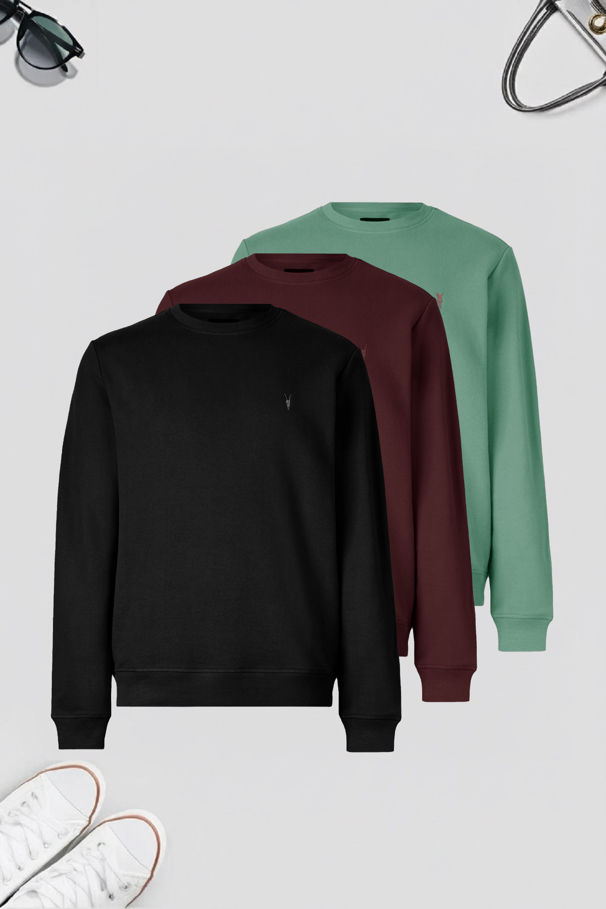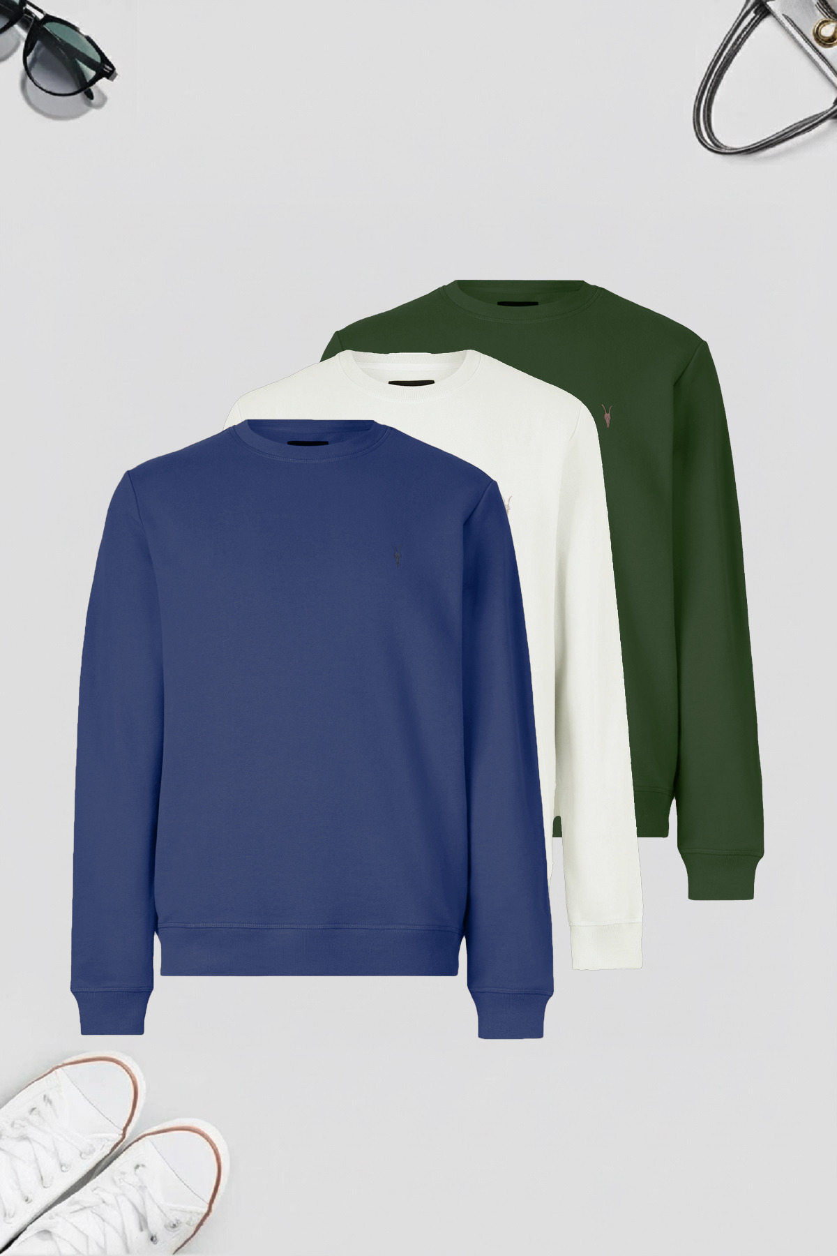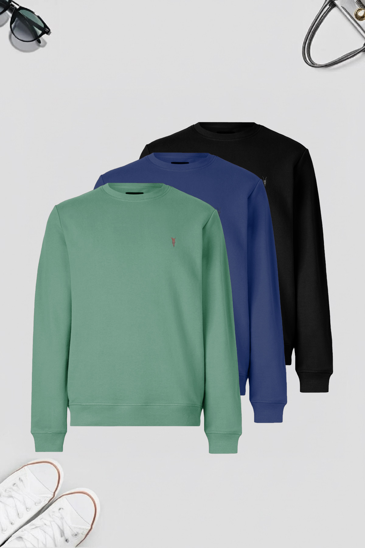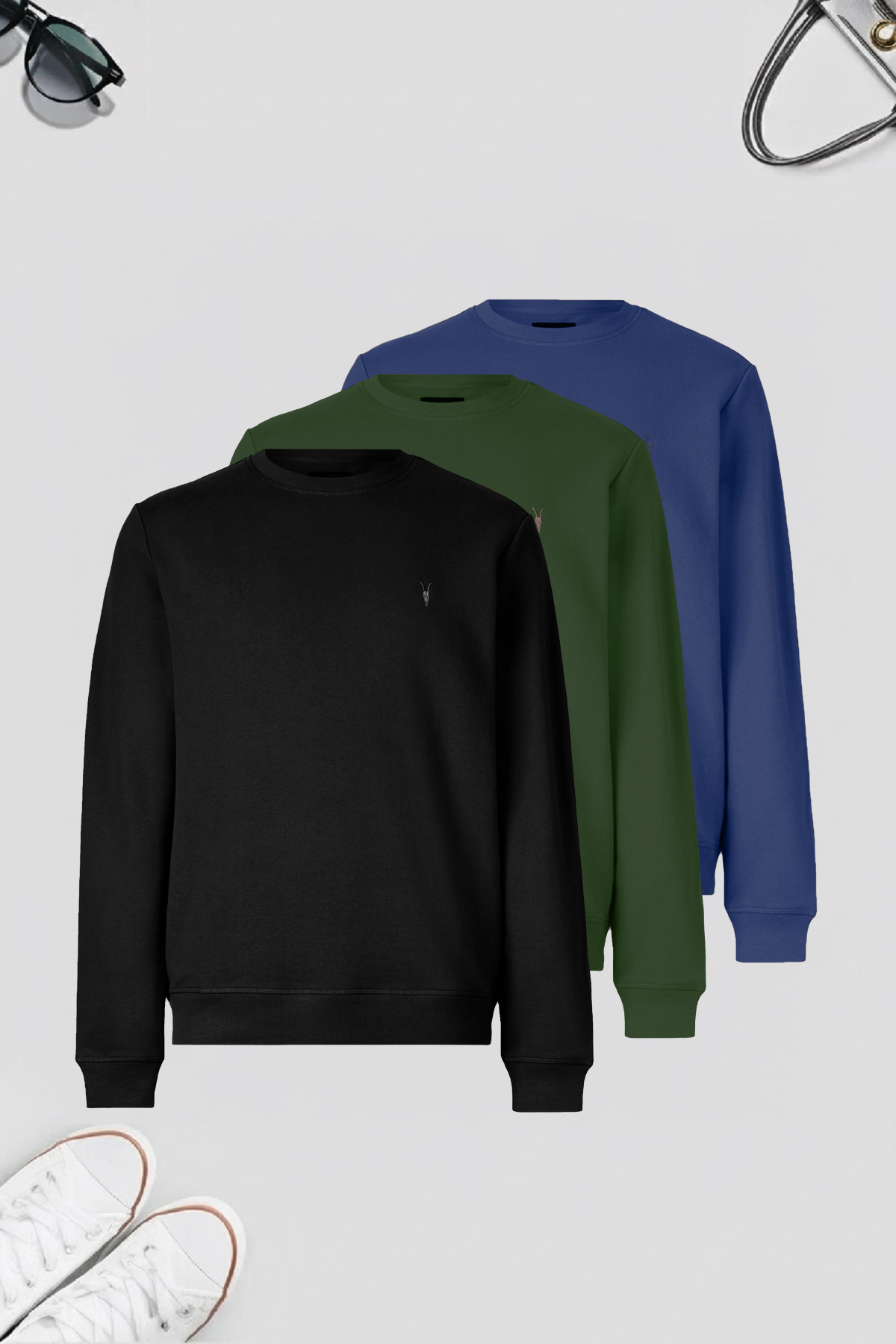 Erkek 3-lü Indigo-kırmızı-haki Sweatshirt Basic Bisiklet Yaka Erkek 3-lü Indigo-kırmızı-haki Sweatshirt Basic Bisiklet Yaka SWT.0021 2XL