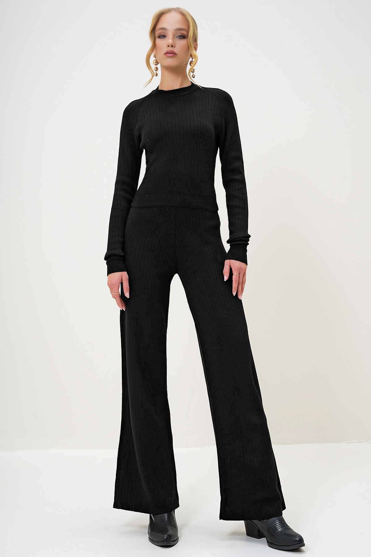 Kadın Gri Bisiklet Yaka Triko Crop Bluz Ve Palazzo Pantolon Takım ALC-X12995 Kadın Gri Bisiklet Yaka Triko Crop Bluz Ve Palazzo Pantolon Takım ALC-X12995 Standart