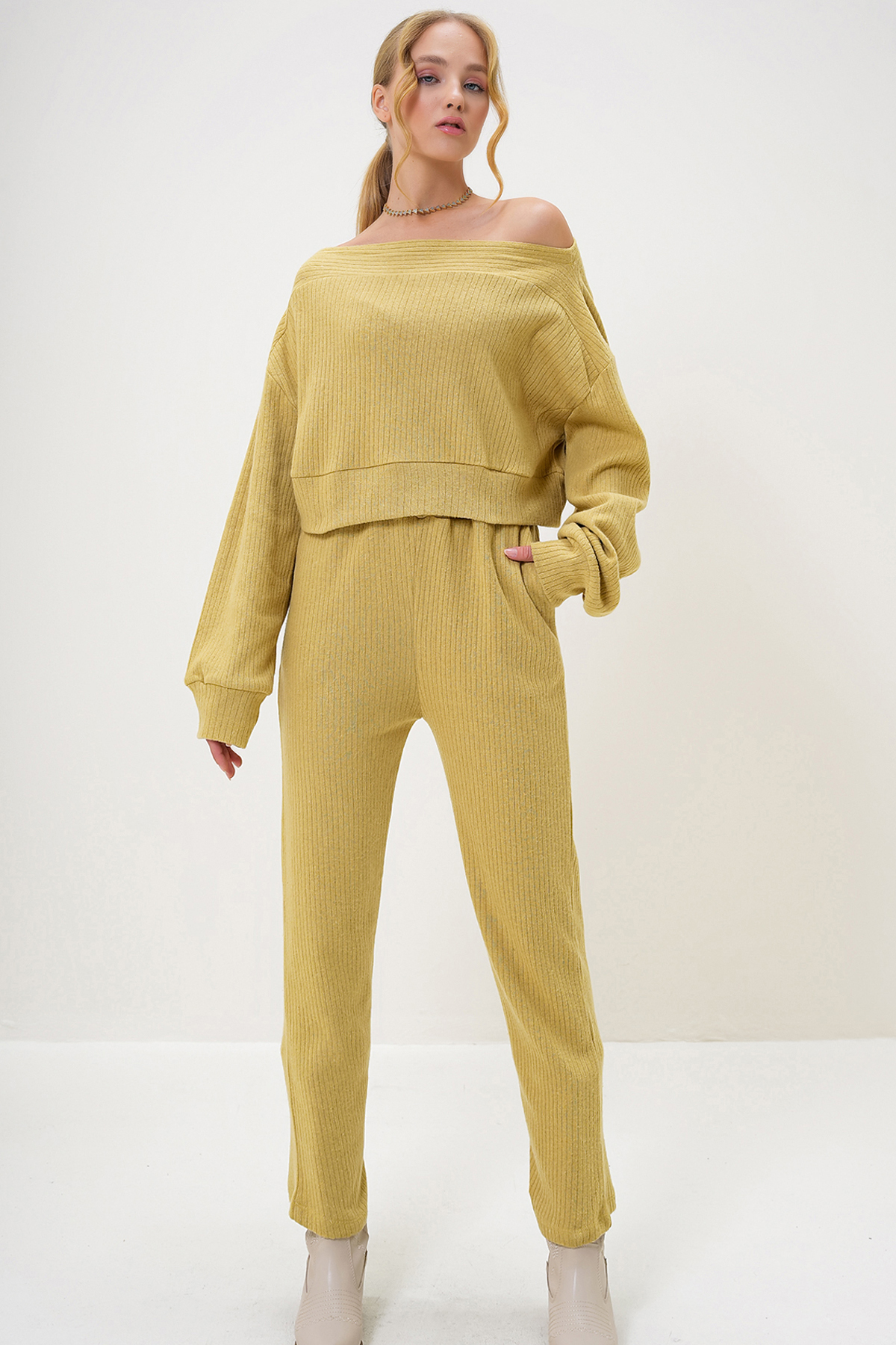 Kadın Lacivert Dik Yaka Kaşkorse Krop Bluz Ve Pantolon Takım ALC-X13058 Kadın Lacivert Dik Yaka Kaşkorse Krop Bluz Ve Pantolon Takım ALC-X13058 L