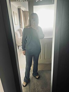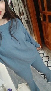 Kadın İndigo Kayık Yaka Kaşkorse Oversize Bluz Ve İspanyol Paça Pantolon Takım ALC-X13059 Kadın İndigo Kayık Yaka Kaşkorse Oversize Bluz Ve İspanyol Paça Pantolon Takım ALC-X13059 L