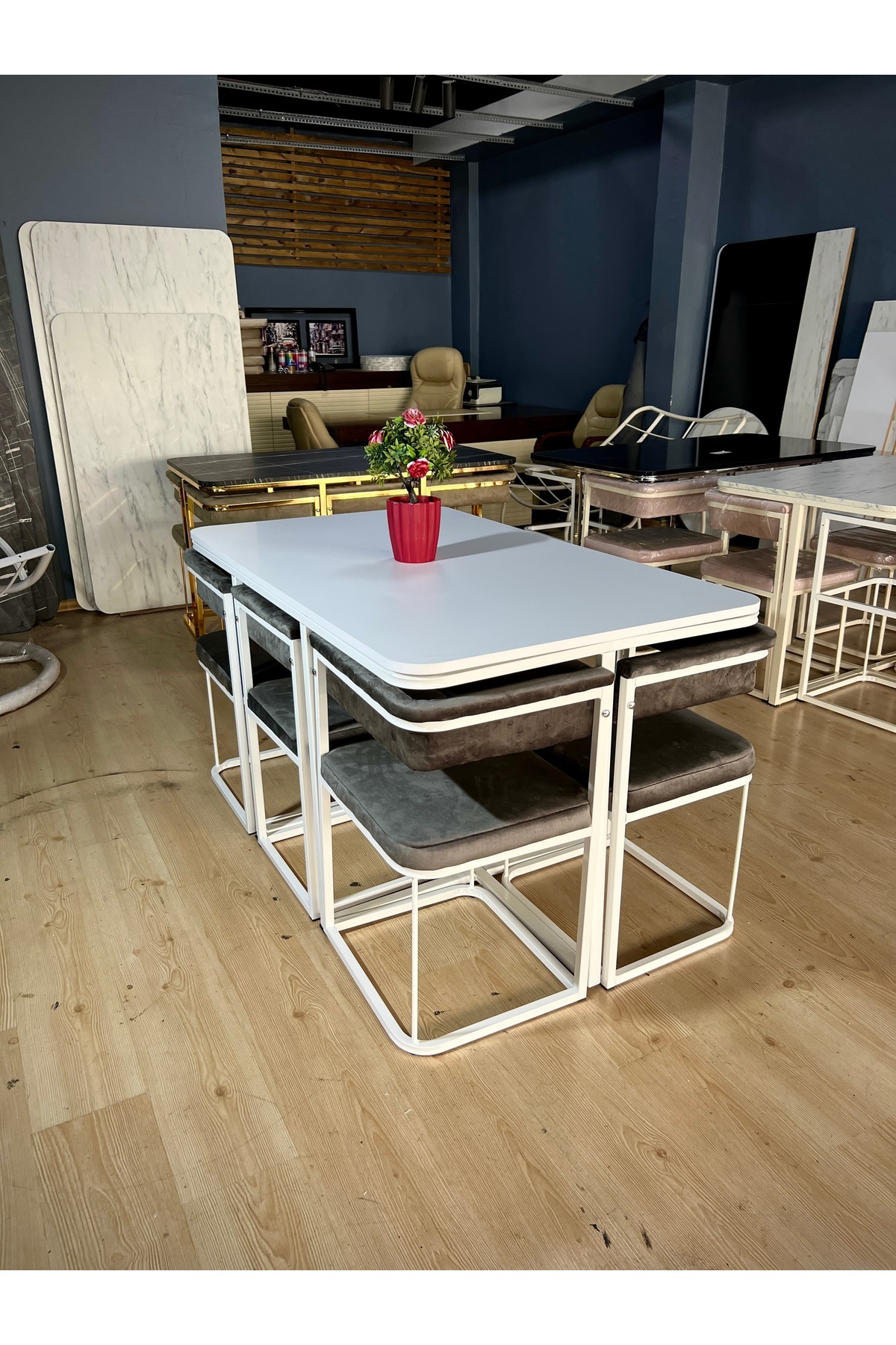 Lego Gold Mutfak Masası Gizlenebilir Sandalyeli Akıllı Mutfak Yemek Masası 6 Kişilik Desenli Mermer Lego Gold Mutfak Masası Gizlenebilir Sandalyeli Akıllı Mutfak Yemek Masası 6 Kişilik Desenli Mermer beyaz-gri-düzbeyaz تک سایز