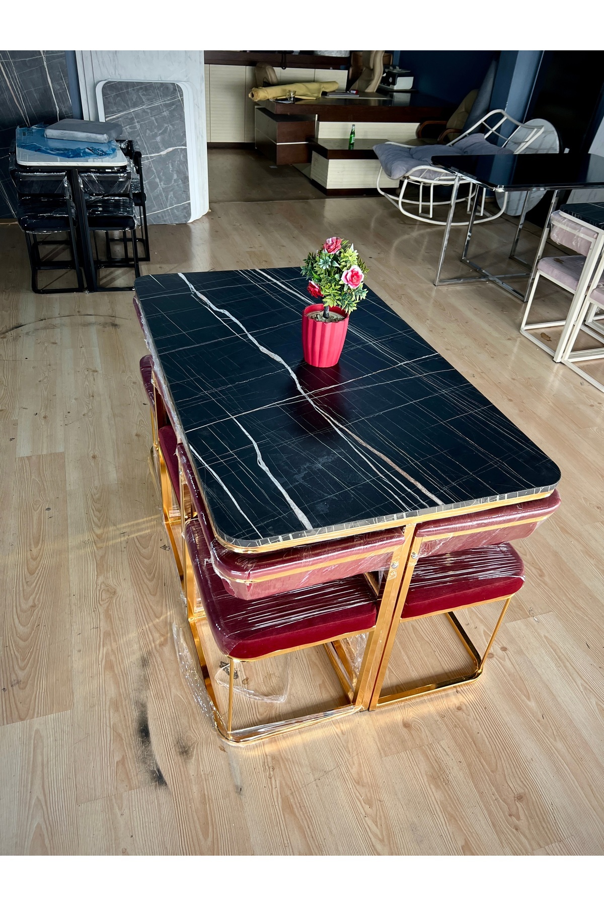 Lego Gold Mutfak Masası Gizlenebilir Sandalyeli Akıllı Mutfak Yemek Masası 6 Kişilik Desenli Mermer Lego Gold Mutfak Masası Gizlenebilir Sandalyeli Akıllı Mutfak Yemek Masası 6 Kişilik Desenli Mermer gold-bordo-siyahmermer تک سایز