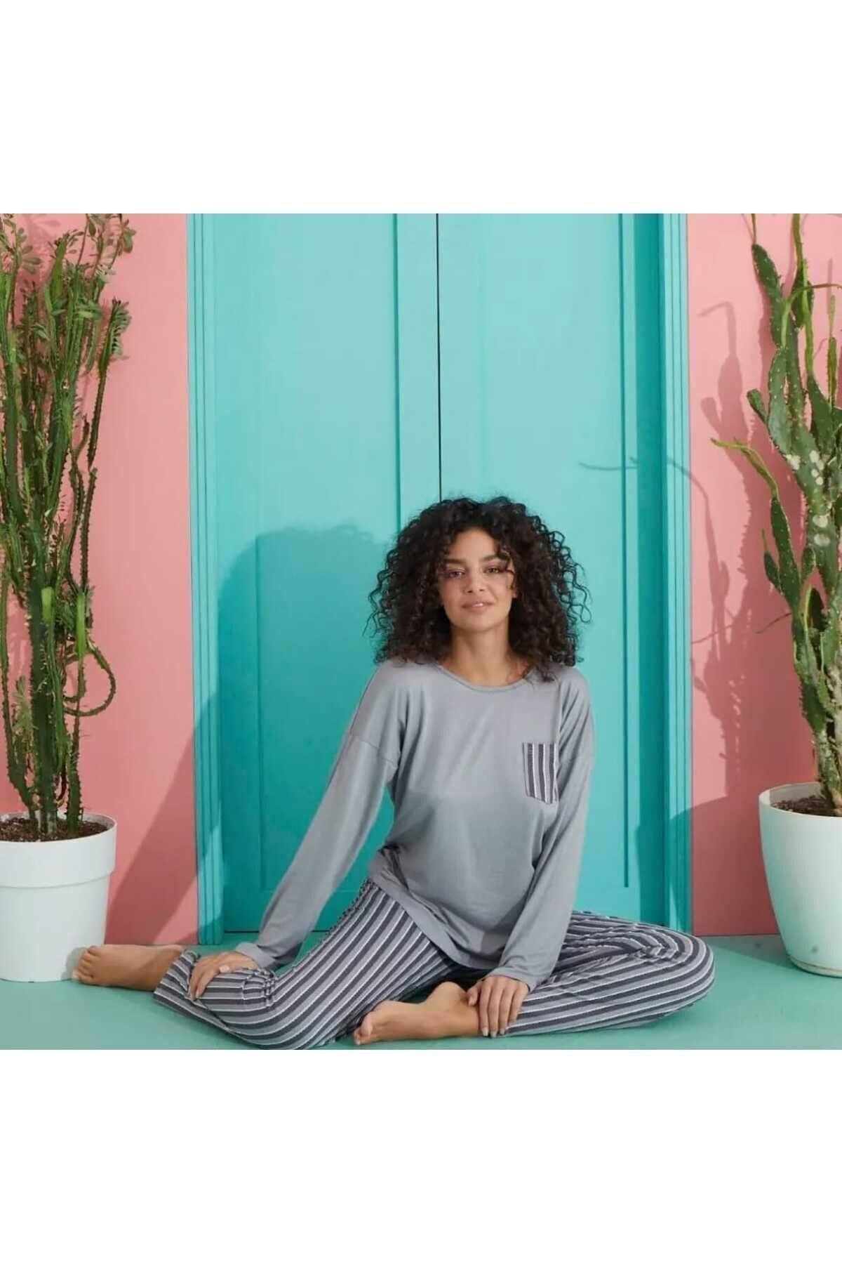 Pamuklu çizgili pijama takımı Pamuklu çizgili pijama takımı CZZZG99