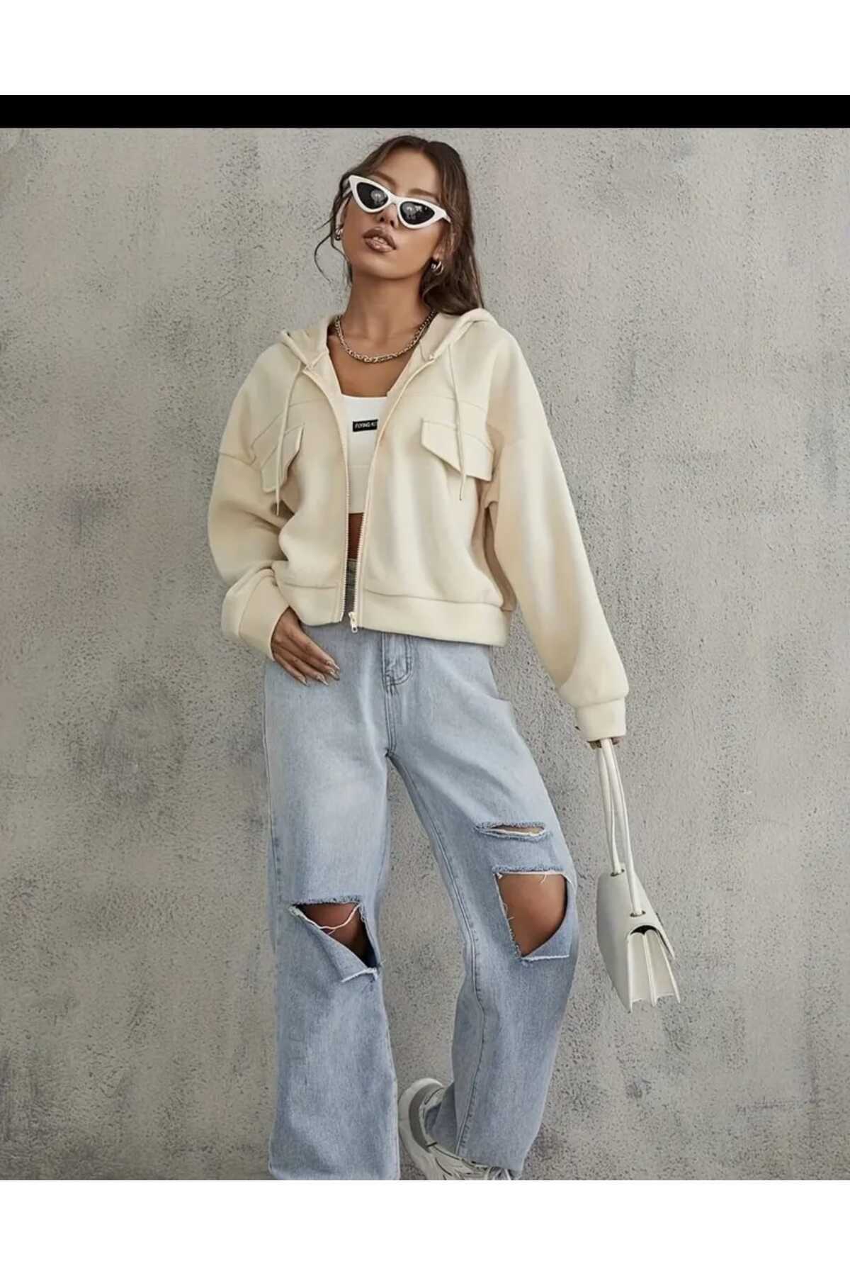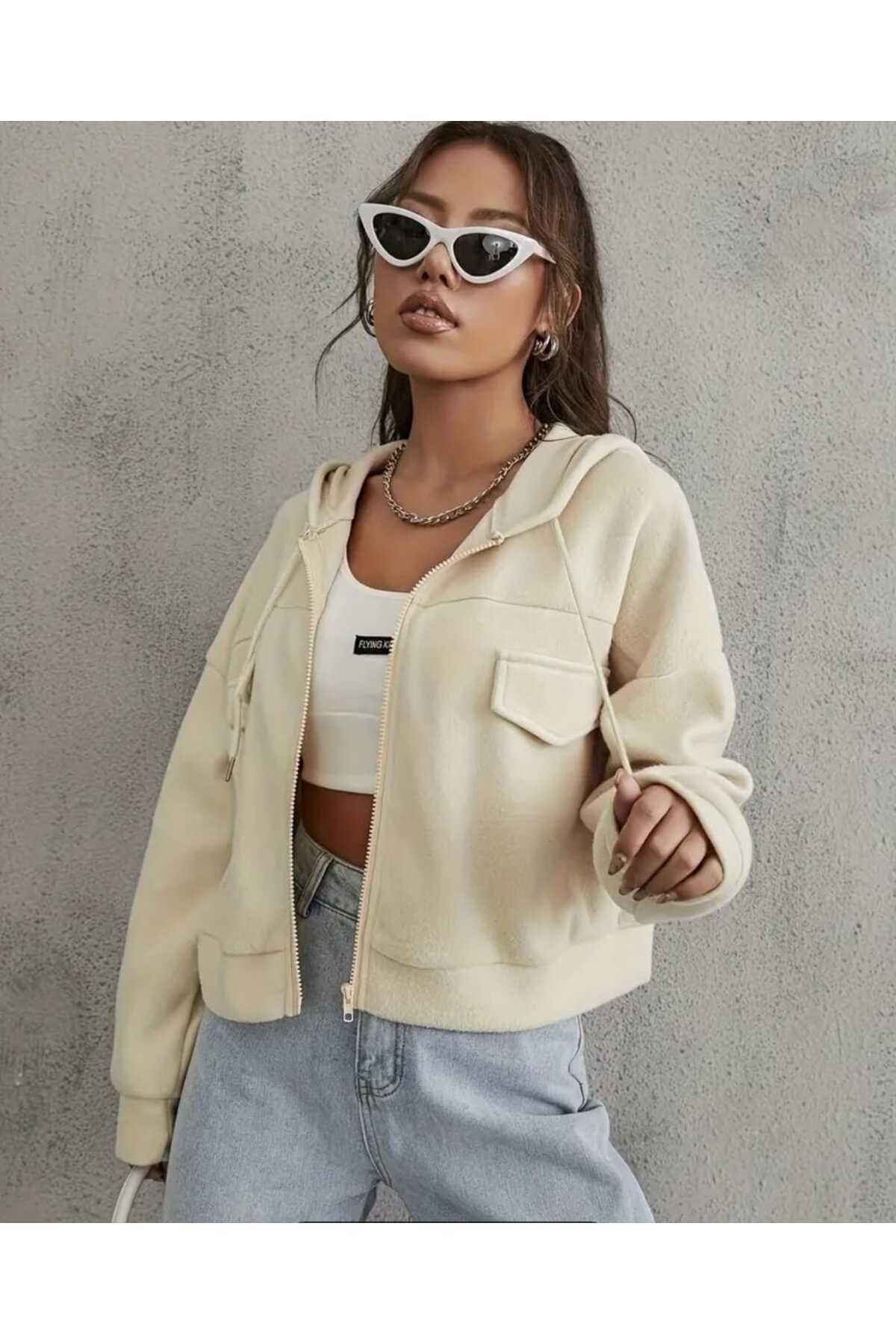 Kadın Tam Fermuarlı kapüşonlu Kalın Polar Ceket Kadın Tam Fermuarlı kapüşonlu Kalın Polar Ceket plr568967 L