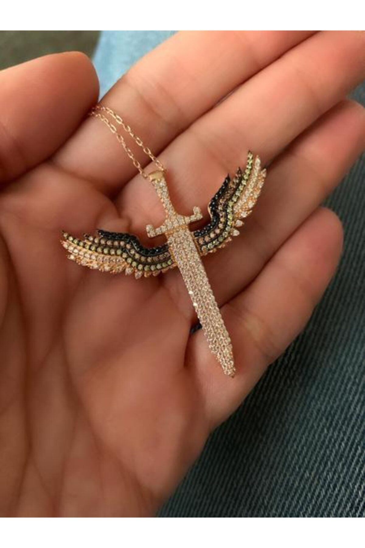 Baş Melek Aziz Mikail Kılıcı Ve Melek Kanatları 925 Ayar Gümüş Kolye Baş Melek Aziz Mikail Kılıcı Ve Melek Kanatları 925 Ayar Gümüş Kolye PNG-KN-410-Oksitli 0