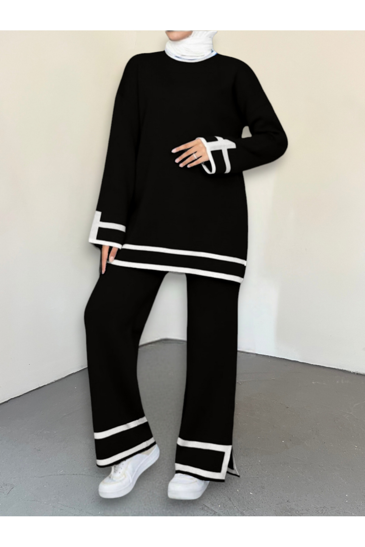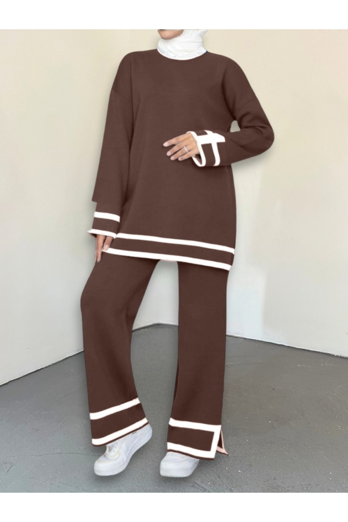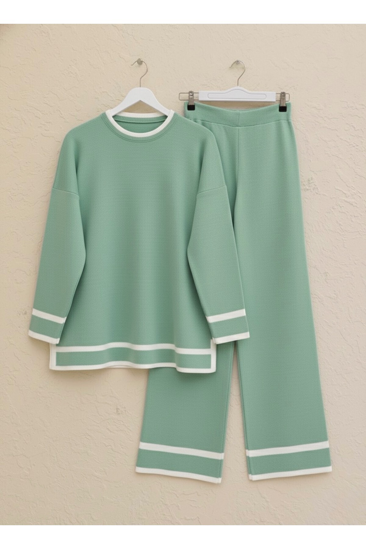 Manşetleri Şeritli İkili Triko Takım Manşetleri Şeritli İkili Triko Takım HJB967468643 Tek Ebat