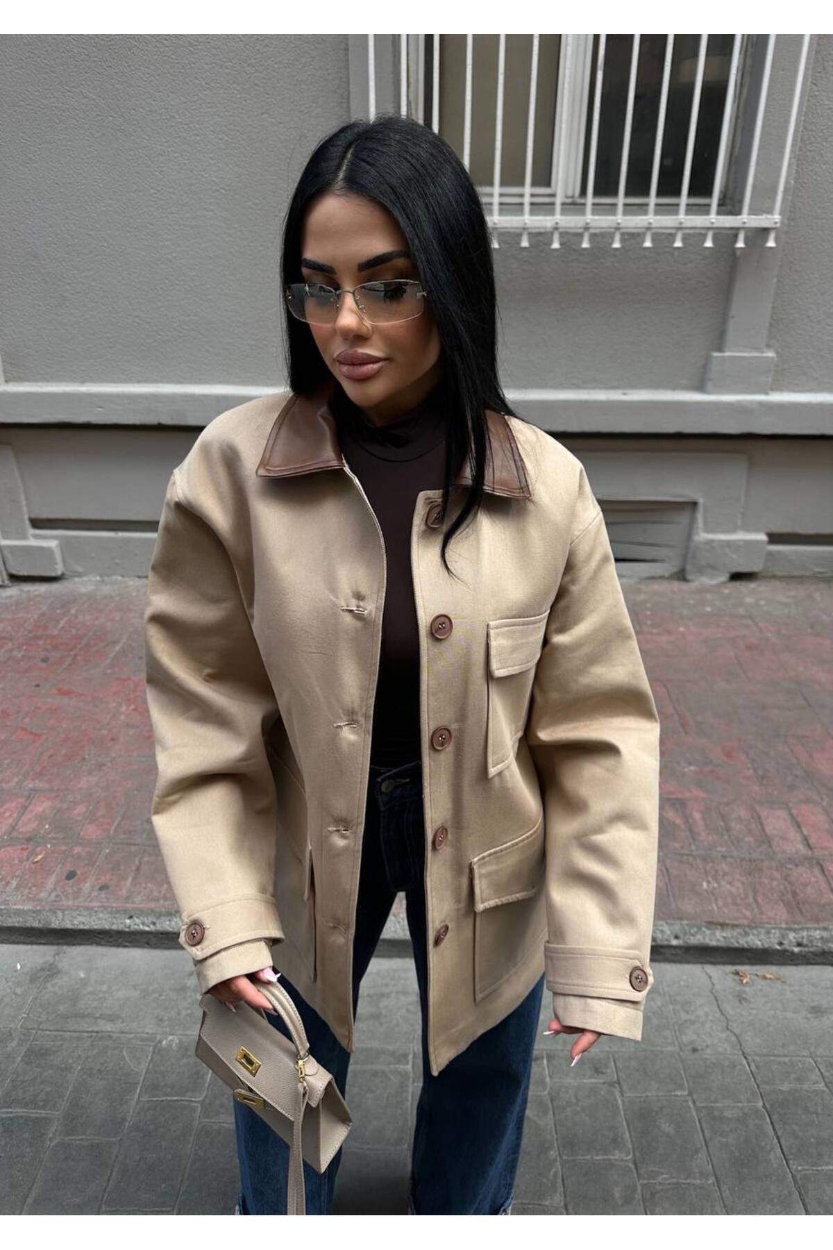 Kadın Deri Yaka Detaylı İçi Kapitone Cepli Ceket Mont Kadın Deri Yaka Detaylı İçi Kapitone Cepli Ceket Mont Laluna988CV L