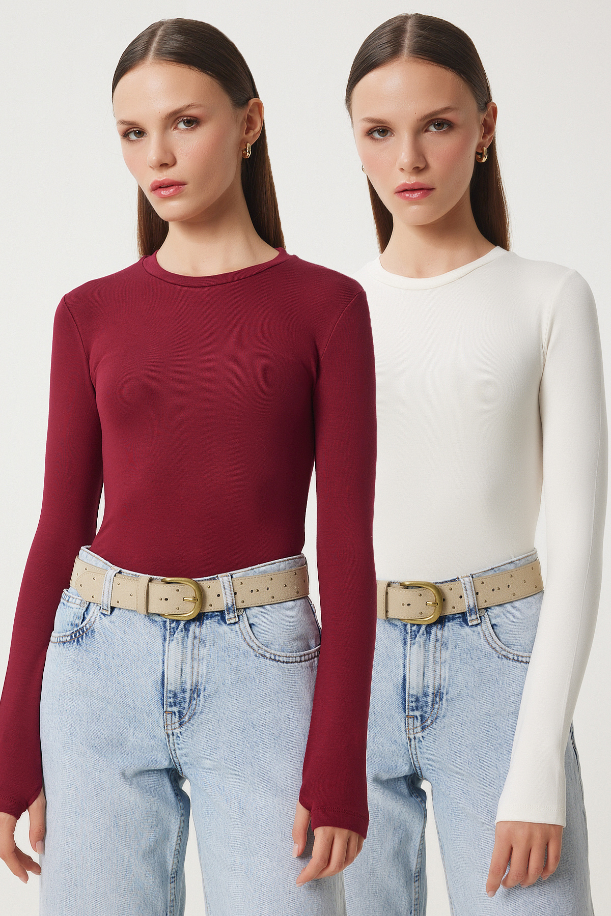 Kadın Ekru Siyah 2' Li Paket Bisiklet Yaka Parmak Geçmeli Basic Örme Bluz CR00440 Kadın Ekru Siyah 2' Li Paket Bisiklet Yaka Parmak Geçmeli Basic Örme Bluz CR00440 42