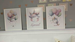 Unicorn Temalı Bebek ve Çocuk Odası 3'lü Tablo İsim Seti Unicorn Temalı Bebek ve Çocuk Odası 3'lü Tablo İsim Seti CKA00050İS 30 x 40
