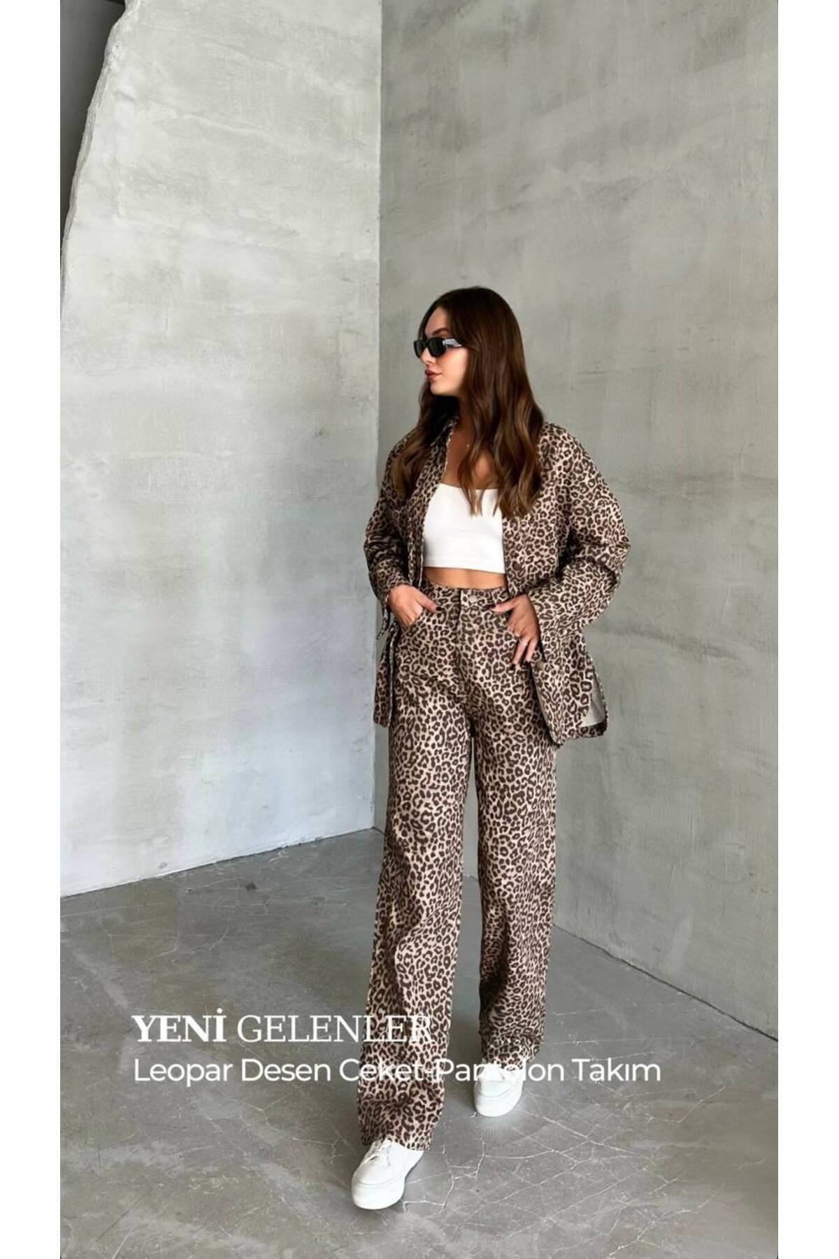 Kadın Kahve Leopar Jean Gömlek Takım Kadın Kahve Leopar Jean Gömlek Takım MK000182 L