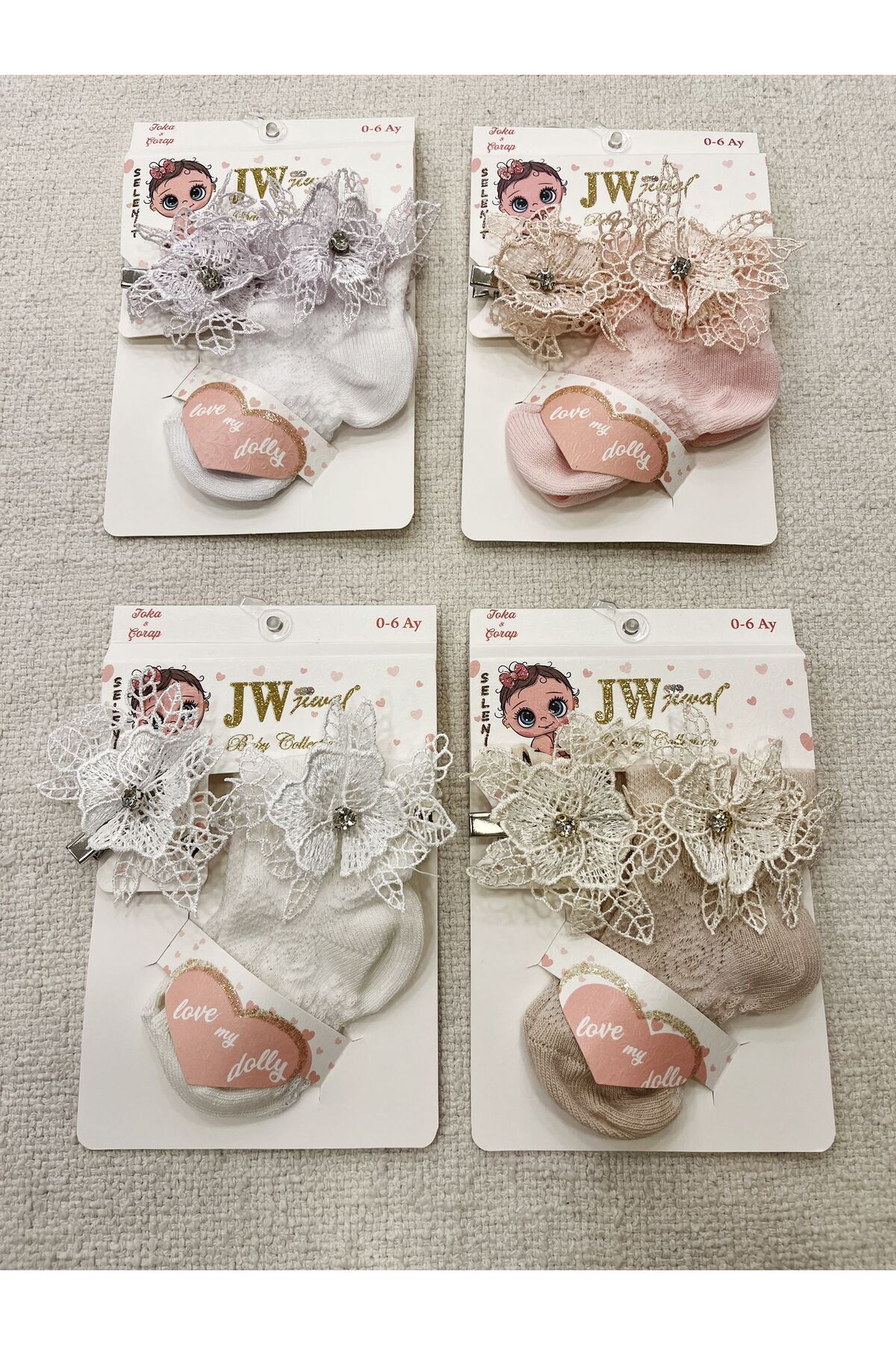 kız bebek çorap toka seti dantelli kendinden desenli kız bebek çorap toka seti dantelli kendinden desenli pb7399 0-6 Ay