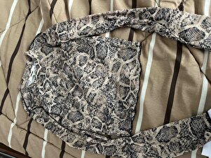 Slim Fit Bisiklet Yaka Uzun Kollu Yılan Derisi Baskılı Crop Tişört Slim Fit Bisiklet Yaka Uzun Kollu Yılan Derisi Baskılı Crop Tişört 5WAK50211EK XL