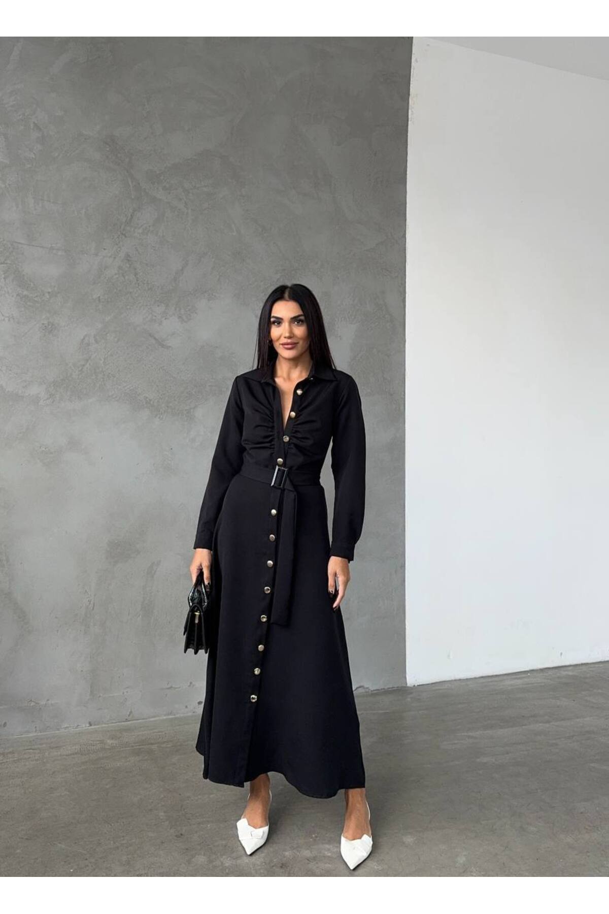 ATLAS KUMAŞ GÖMLEK MODEL KEMEMRLİ TAM BOY ELBİSE ATLAS KUMAŞ GÖMLEK MODEL KEMEMRLİ TAM BOY ELBİSE TYCA19A9522171A000 XL