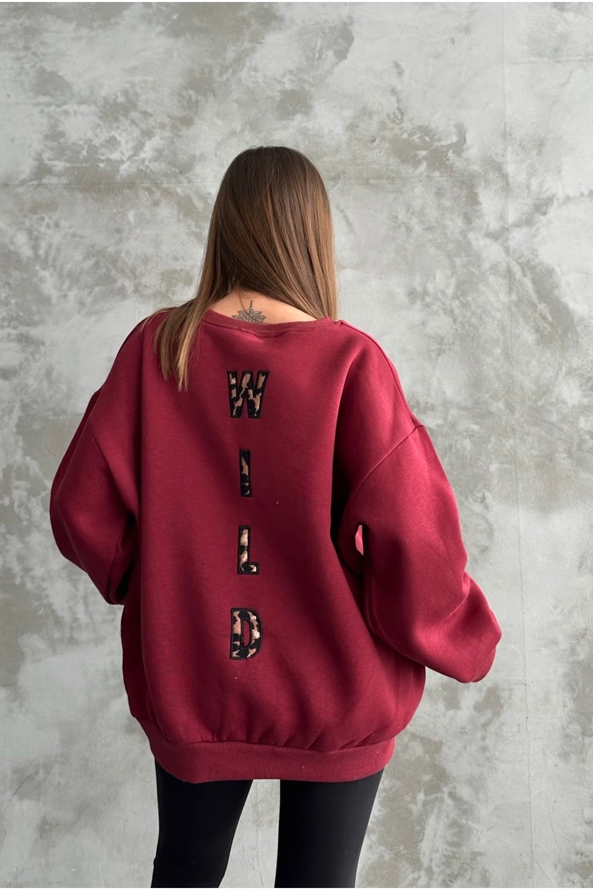 Kadın Önü Fermuar Detaylı Leopar Desenli Bordo Sweat Kadın Önü Fermuar Detaylı Leopar Desenli Bordo Sweat dk60 L