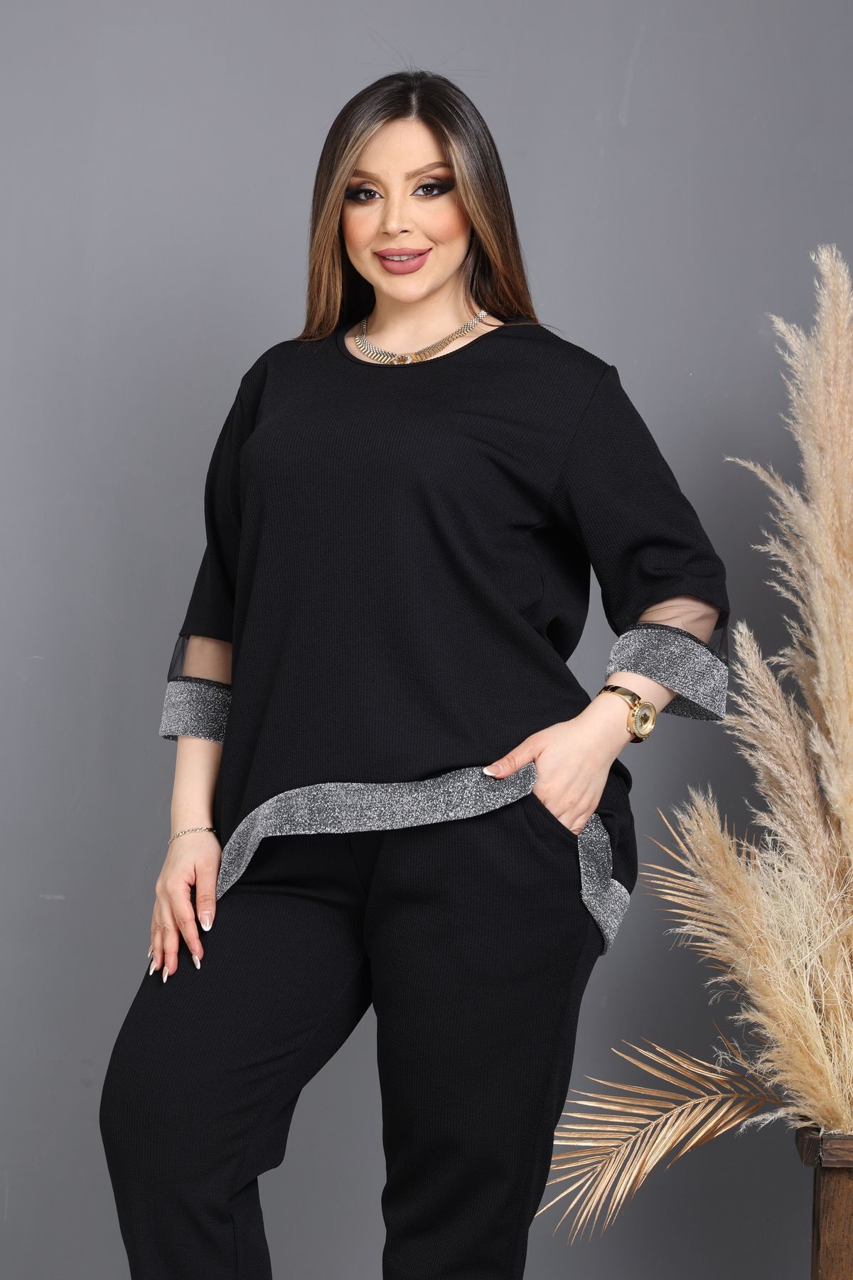 KADIN SİYAH BÜYÜK BEDEN PULPAYET DETAYLI ÜSTÜ KOLYE AKSESUAR BLUZ KADIN SİYAH BÜYÜK BEDEN PULPAYET DETAYLI ÜSTÜ KOLYE AKSESUAR BLUZ BL2009 50