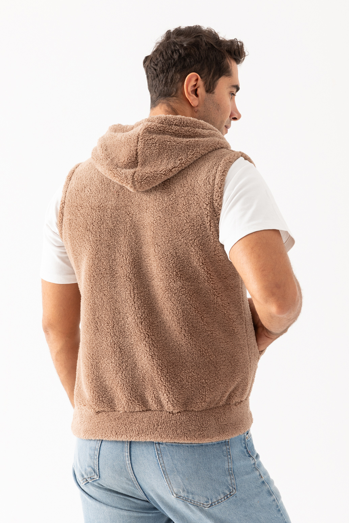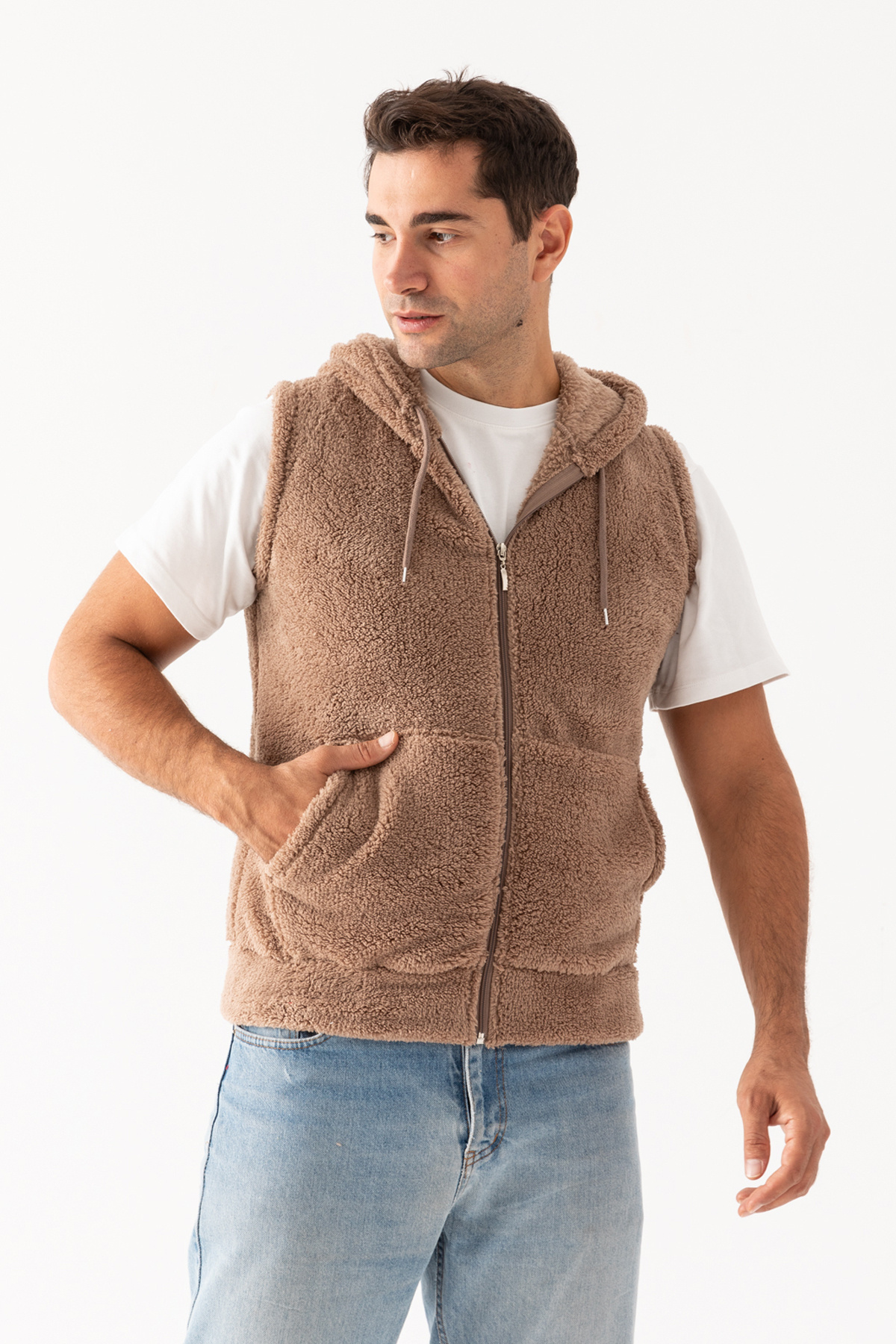Erkek Vizon Dik Yaka Kolsuz Astarsız Fermuarlı Kapüşonlu Peluş Yelek Erkek Vizon Dik Yaka Kolsuz Astarsız Fermuarlı Kapüşonlu Peluş Yelek 800219 4XL