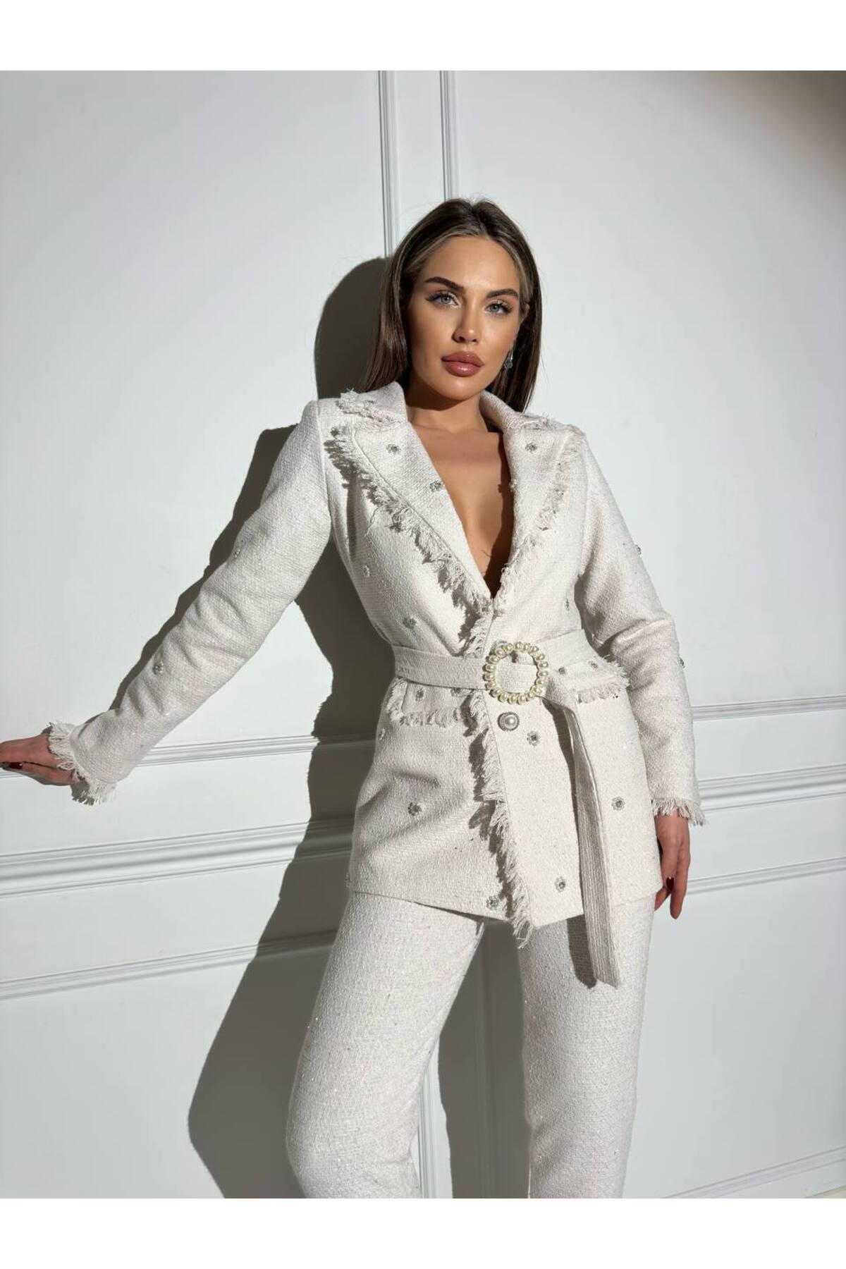 Kadın Beyaz İthal Tüvit Kumaş İnci İşlemeli Kemer Ve Gül Detaylı Astarlı Özel Tasarım Takım Kadın Beyaz İthal Tüvit Kumaş İnci İşlemeli Kemer Ve Gül Detaylı Astarlı Özel Tasarım Takım NS-09takım 2XL