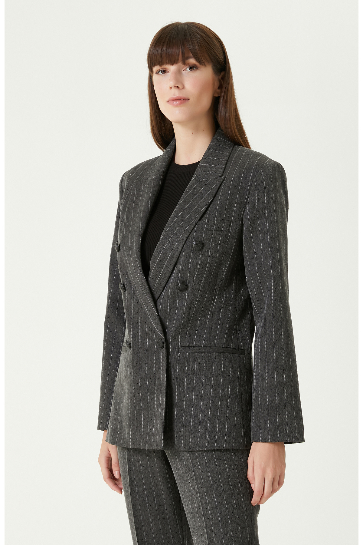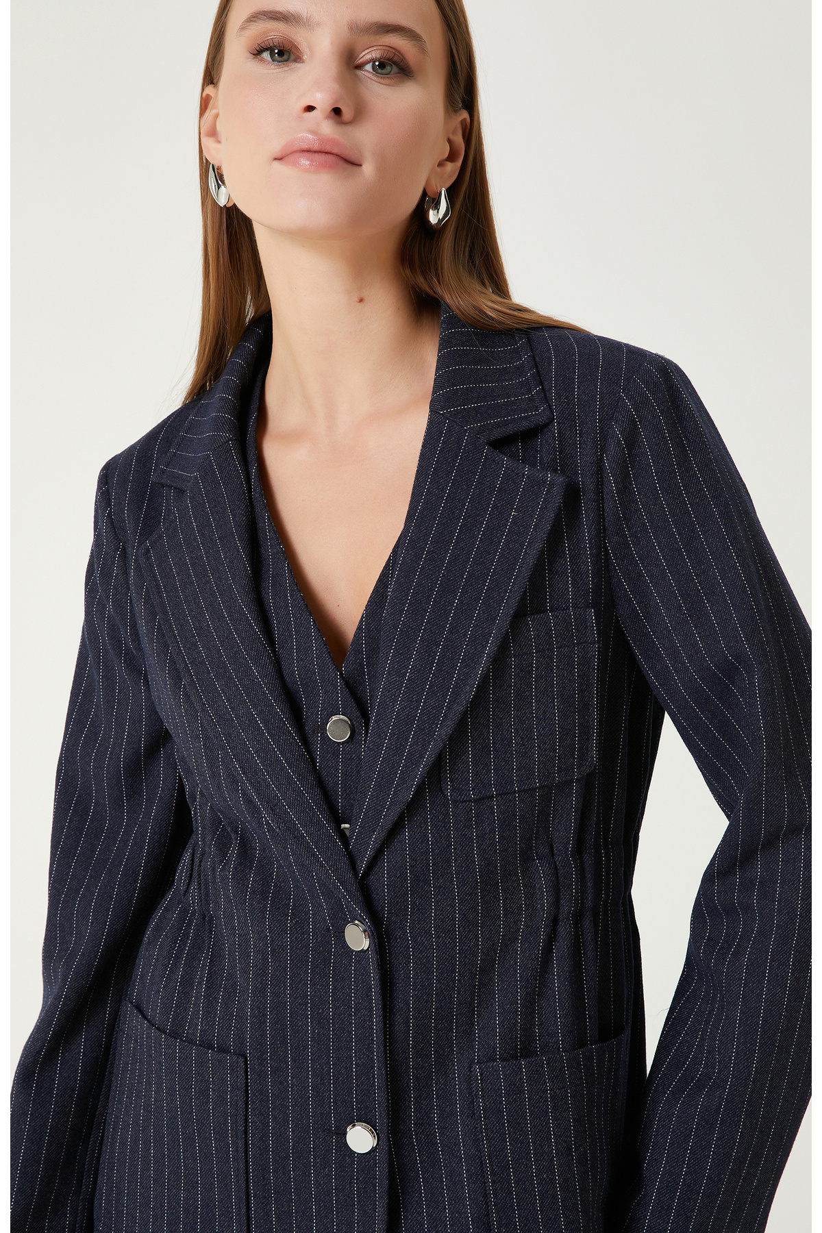 Lacivert-Kırık Beyaz Yün Karışımlı Çizgili Ceket Lacivert-Kırık Beyaz Yün Karışımlı Çizgili Ceket 1092690 44