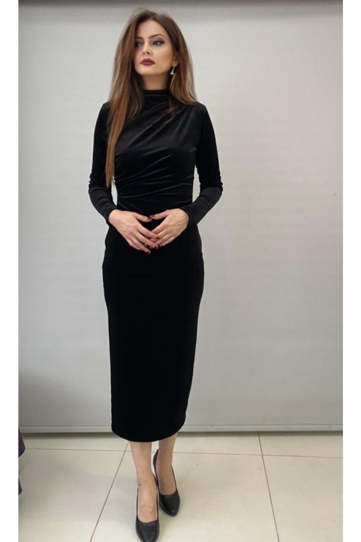 Kadın Kruvaze Yaka Balon Kol Simli Krep Kumaş Midi Boy Kışlık Siyah Elbise Kadın Kruvaze Yaka Balon Kol Simli Krep Kumaş Midi Boy Kışlık Siyah Elbise FML-66ec29ad61f7e L