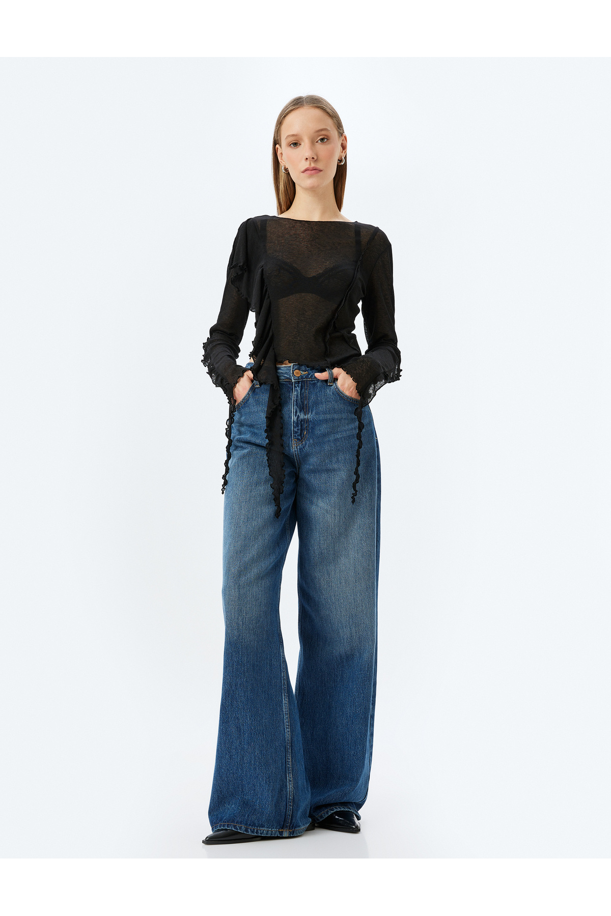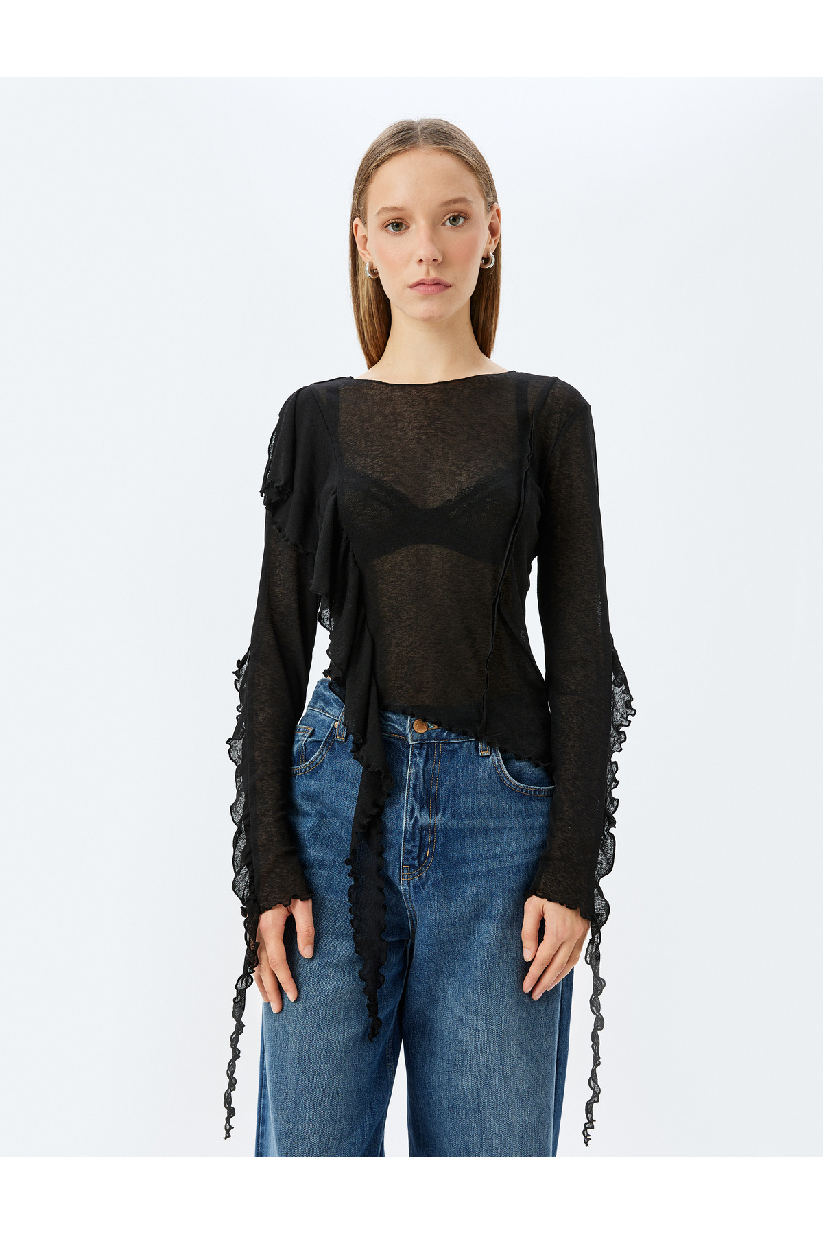 Kayık Yaka Fırfır Detaylı Uzun Kollu Slim Fit Bluz Kayık Yaka Fırfır Detaylı Uzun Kollu Slim Fit Bluz 5WAL60025IK XL